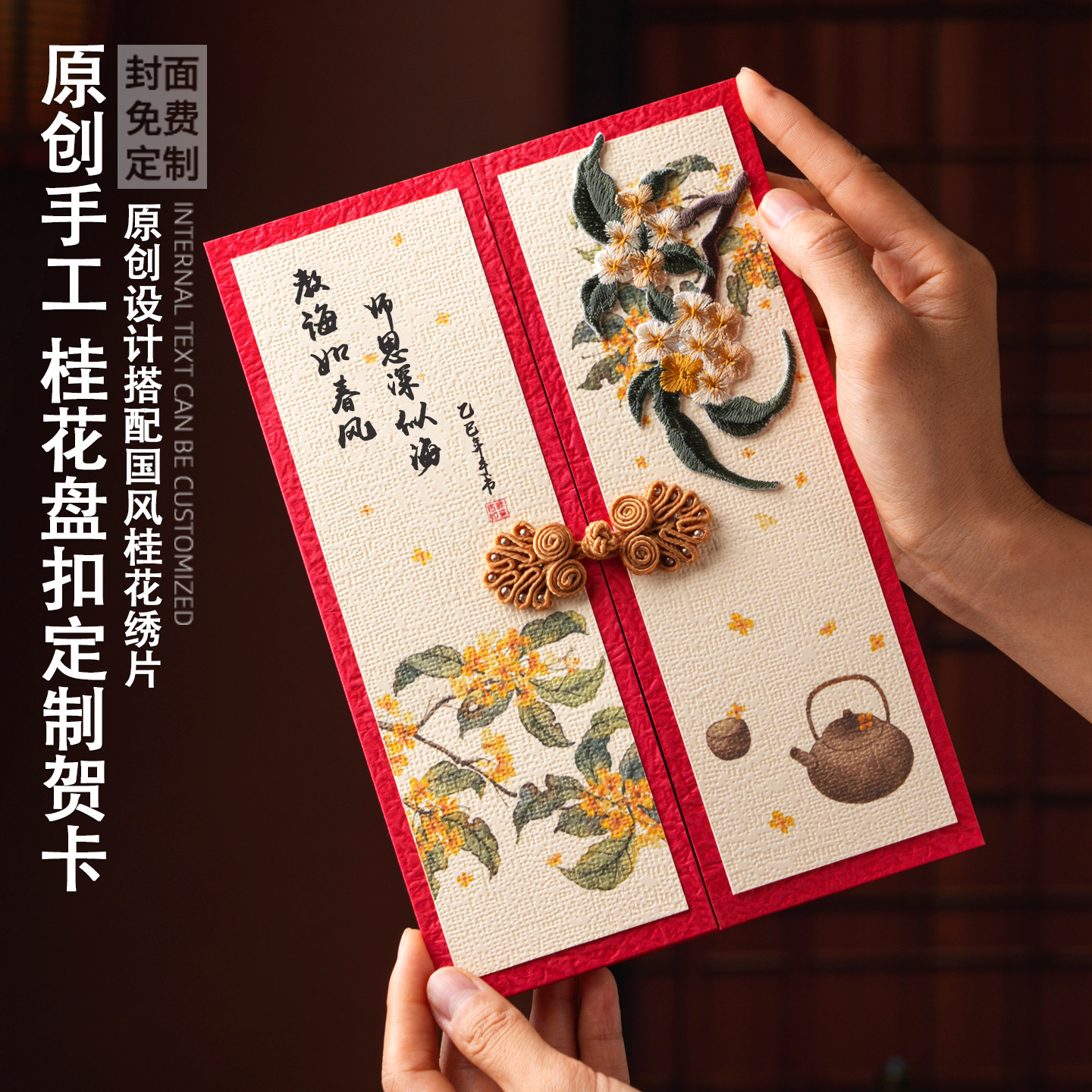 📚 2026新年桂花国风手工贺卡定制教师送老师礼物同事退休卡片邀请函
