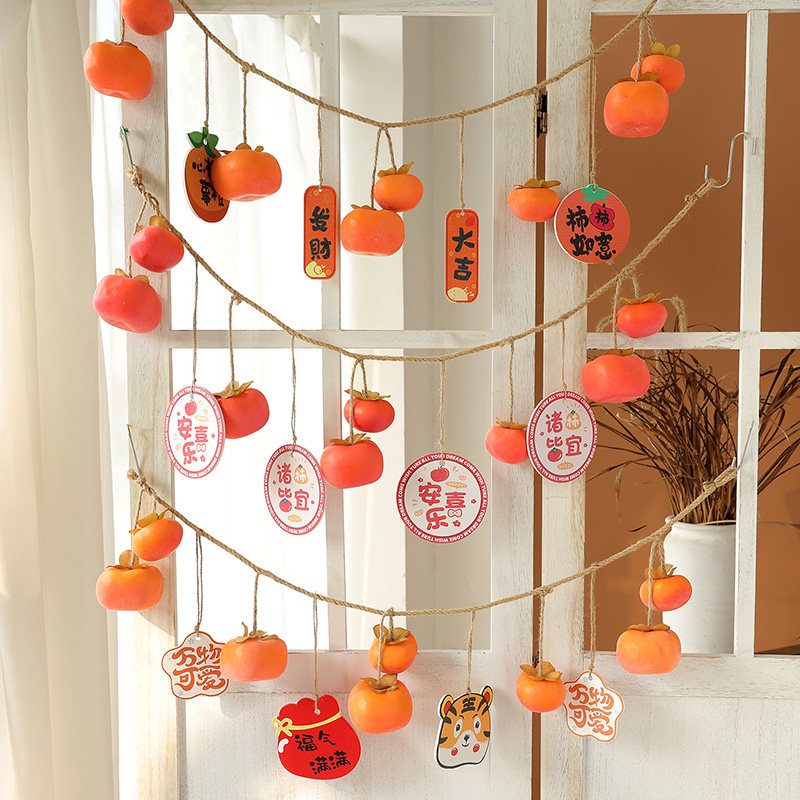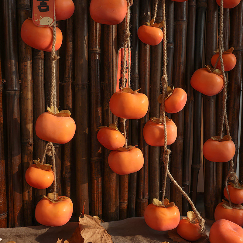 📚 仿真柿子串带霜墙上挂件吊挂果实秋意造景摆件餐厅家居客厅饰品