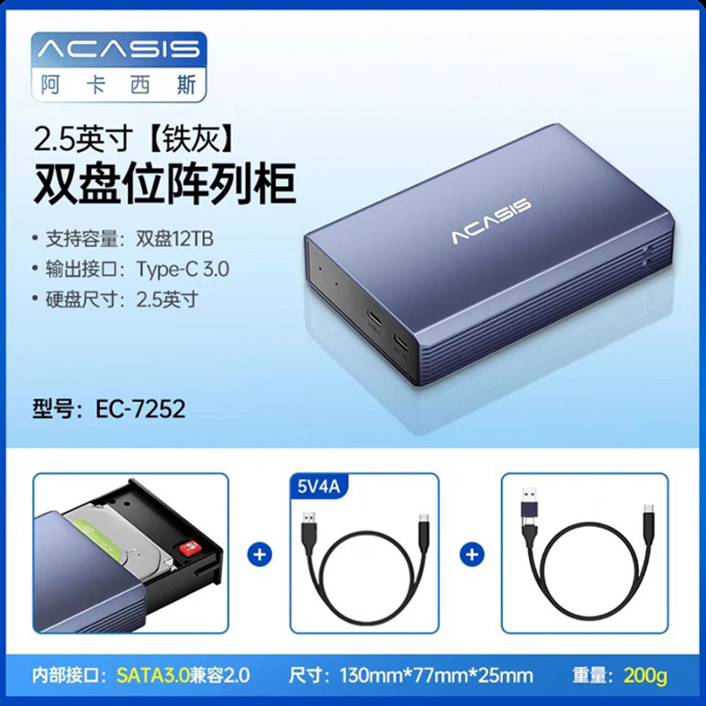 📚 阿卡西斯 2.5寸双盘位移动硬盘盒子SATA固态机械usb3.0磁盘阵列柜