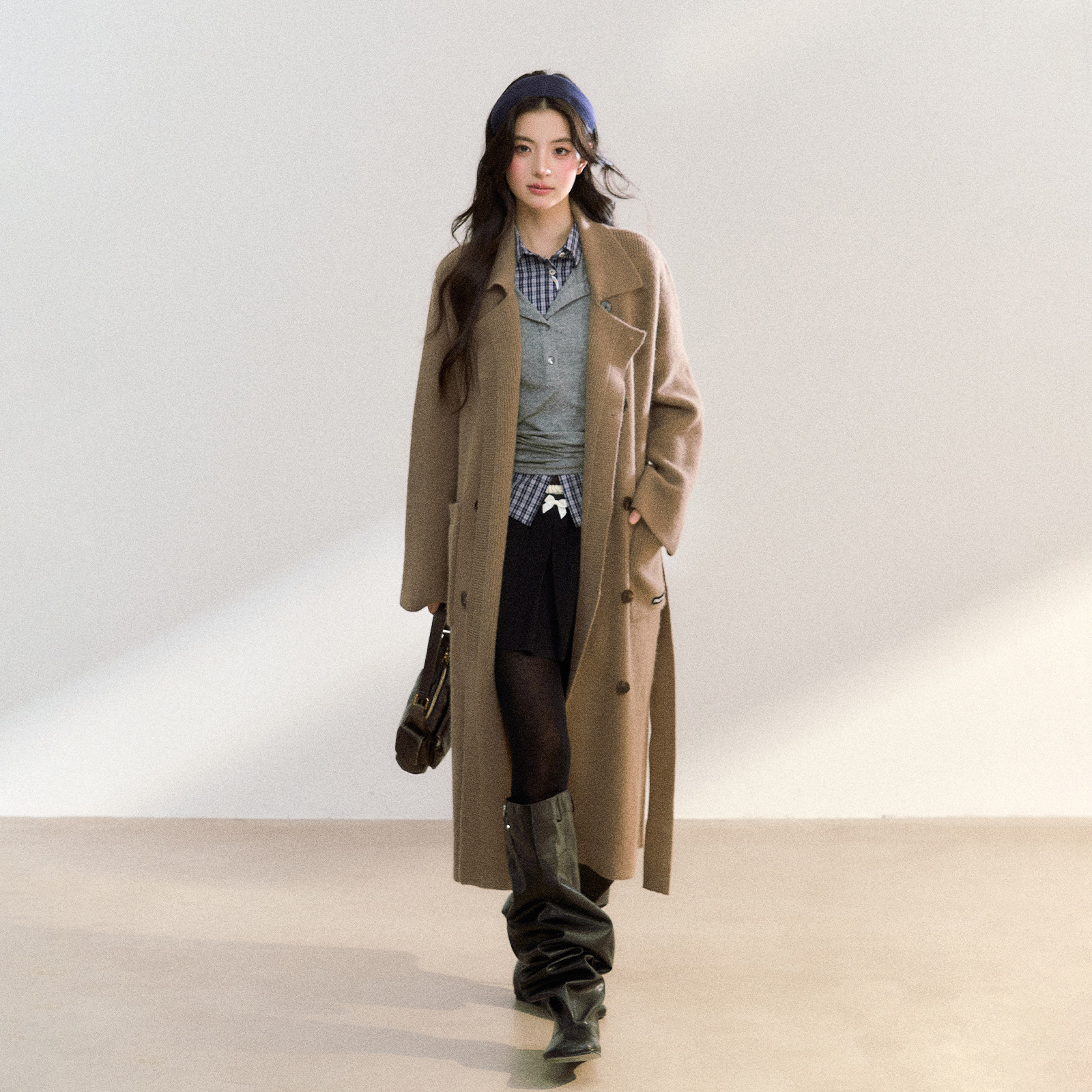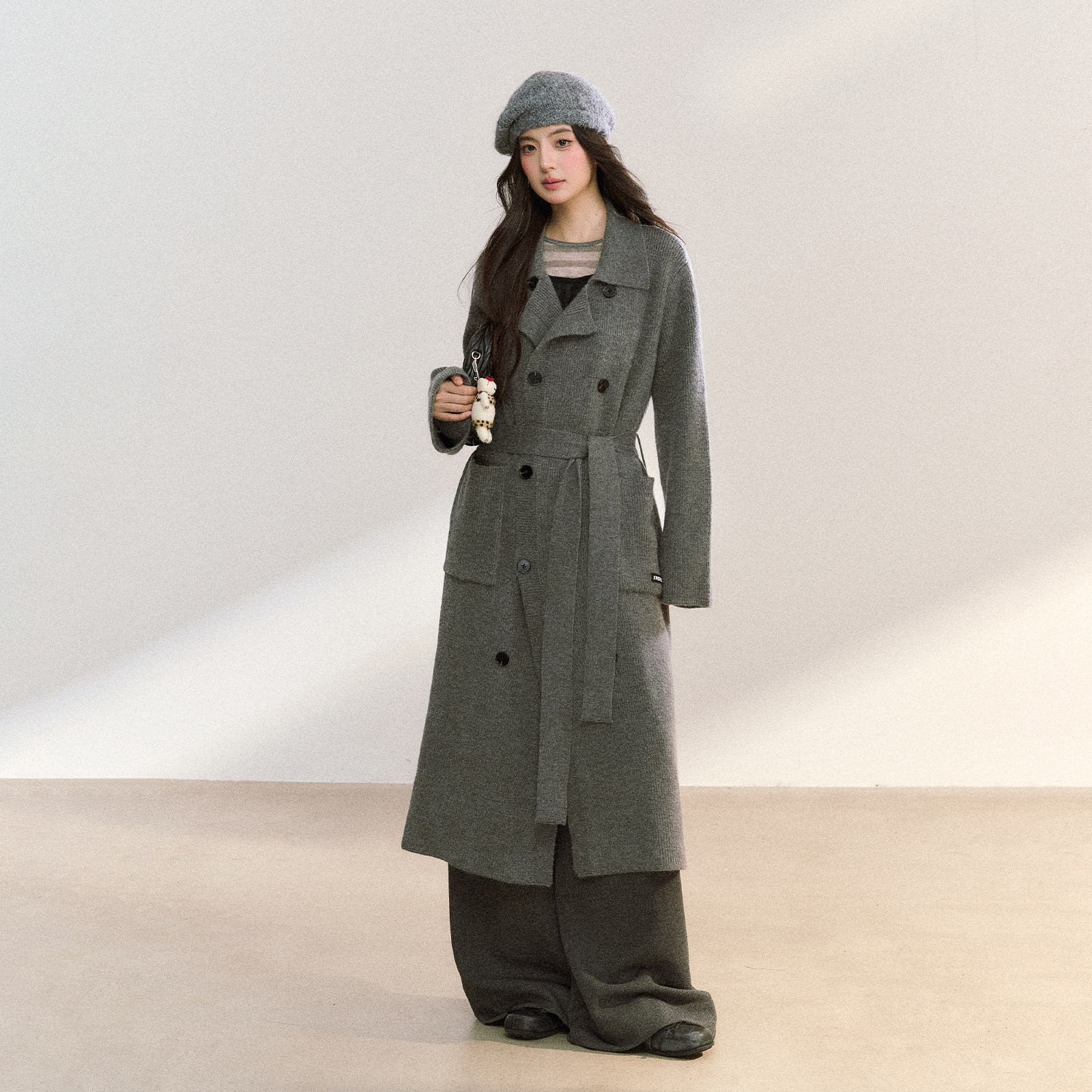 📚 FPMZ基础简约翻领双排扣大毛衣长款气质针织开衫秋冬显瘦慵懒外套