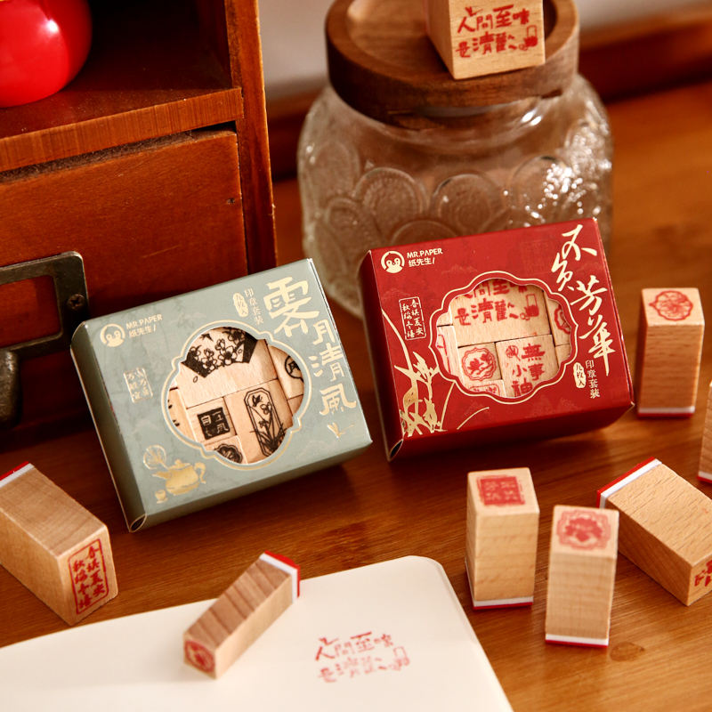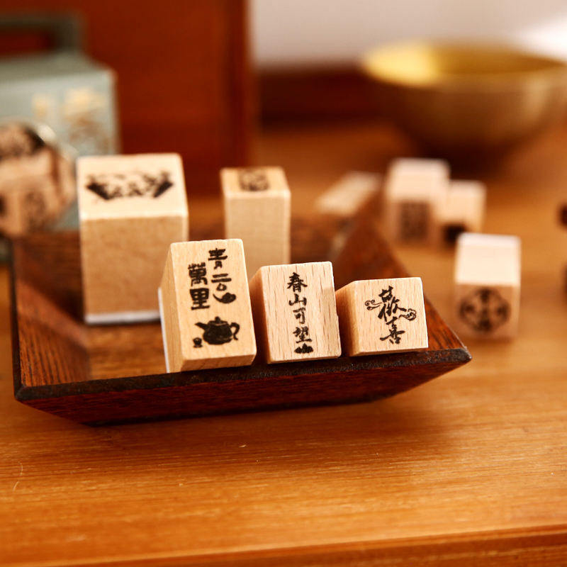 📚 长乐未央国风木质印章套装文字新年古风手帐创意装饰手账木制用印