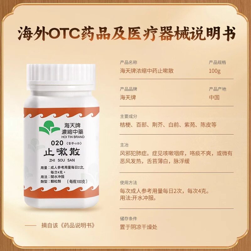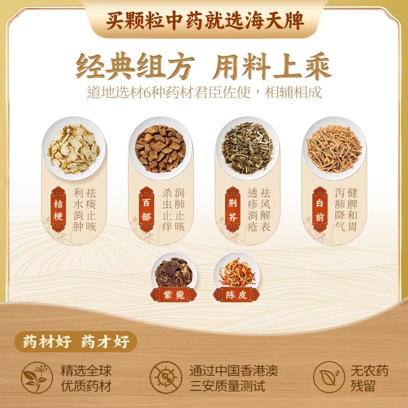 📚 海天牌止嗽散中成药颗粒古方止咳化痰宣肺疏表清喉咽干咽痒咯痰
