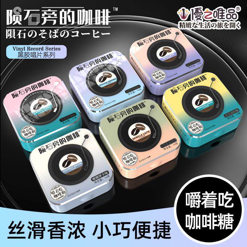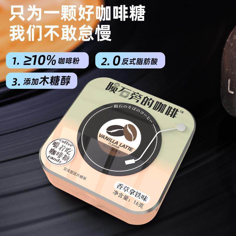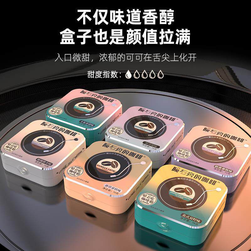 📚 D正品陨石旁的咖啡糖铁盒即食可嚼黑咖啡味硬糖咖啡豆糖块