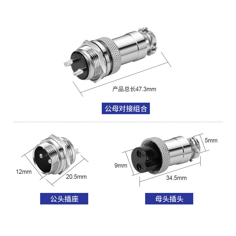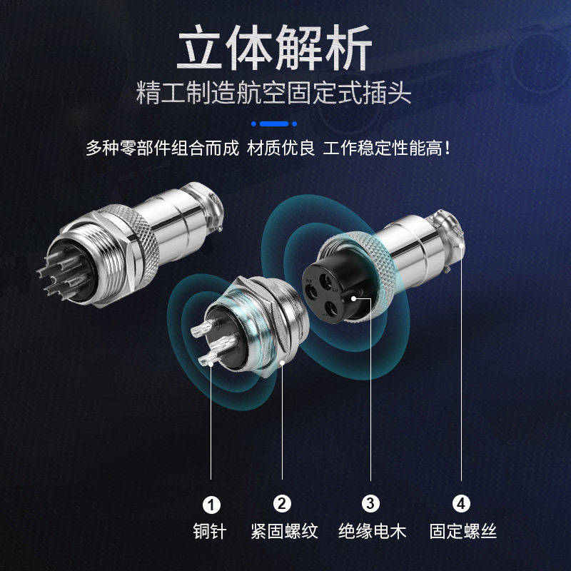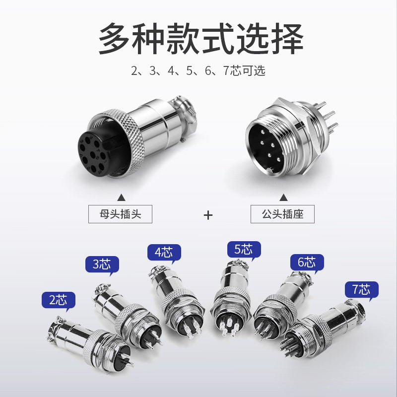 📚 面板固定式航空插头GX12/16/20mm-2/3/4/5/6/7/8芯公母对接连接器