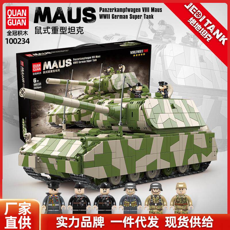 📚 全冠100234积木鼠式重型坦克高难度拼装小颗粒军事模型兼容乐高