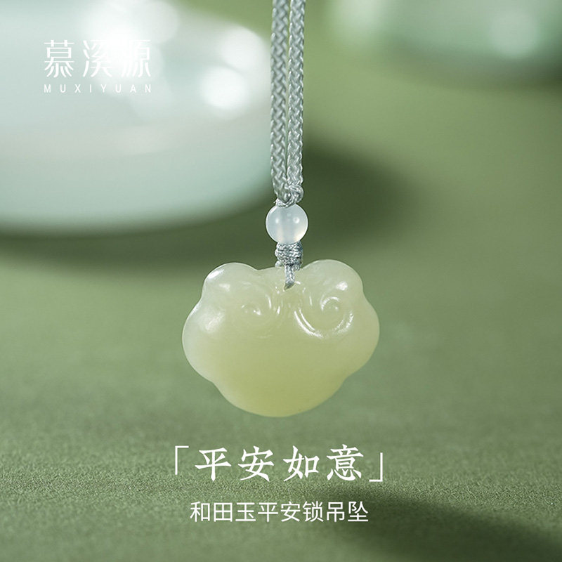 📚 慕溪源和田玉平安锁吊坠女款玉锁项链挂件