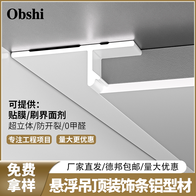 📚 悬浮吊顶铝合金收口条阴影缝型材极简无主灯吊顶预埋件卡槽边角线