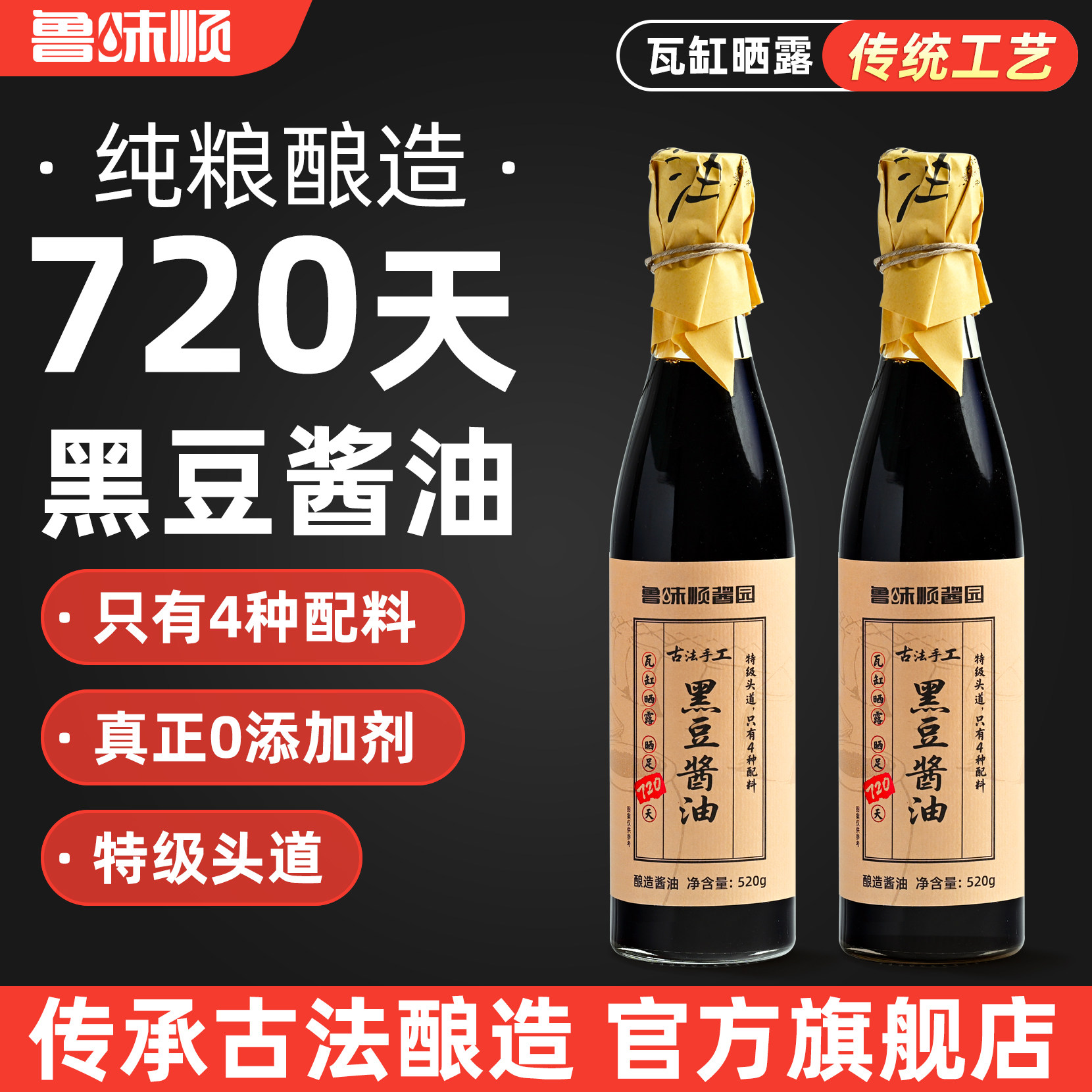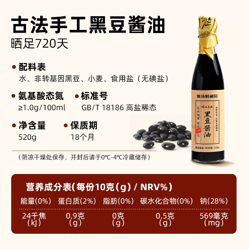 📚 鲁味顺酱园720天酿造黑豆酱油非转基因黑豆传统手工古法发酵0添加