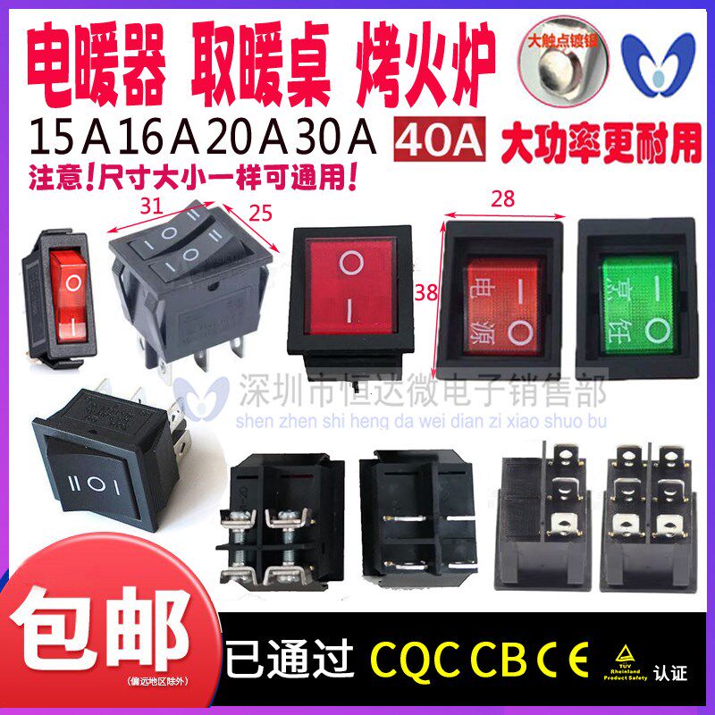 📚 麻将机电源开关电烤箱电焊机取暖器开关船型开关KCD4带灯四脚两档