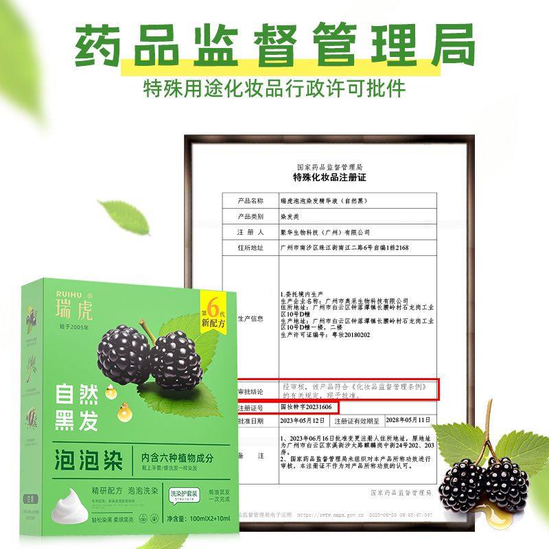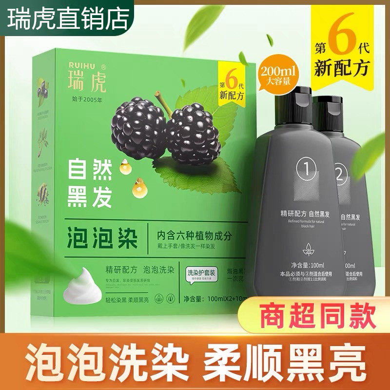 📚 瑞虎一洗染黑香波黑色染发剂植物一洗黑不伤发自然黑色天然头发膏