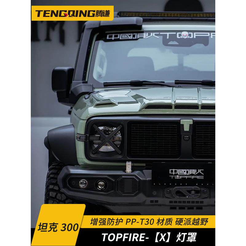 📚 坦克300至暗前脸大灯罩顶火改装件汽车装饰风林铁骑02中网保护罩