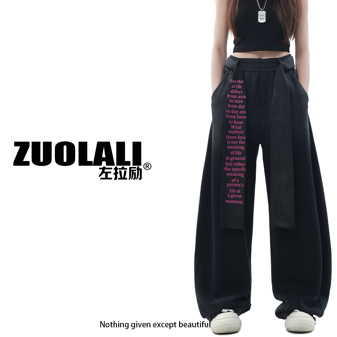 📚 ZUOLALI/左拉励【飘带裤】雅裁系列-美式字母腰带设计阔腿休闲裤