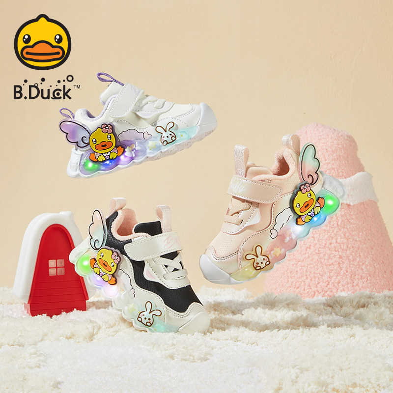 📚 小黄鸭童鞋儿童运动鞋冬季男童鞋子发光亮灯鞋二棉加绒宝宝小童鞋