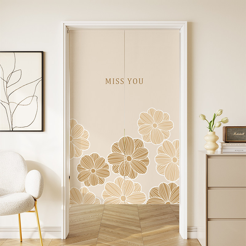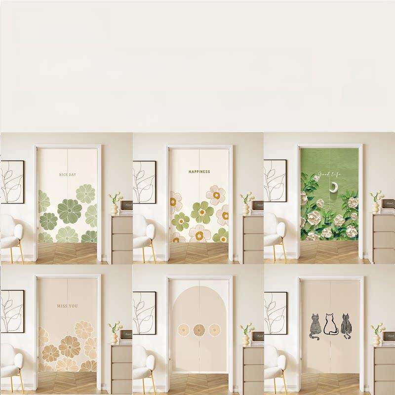 📚 小清新花朵门帘遮光帘不掉杆加厚简约免打孔安装门帘布厨房帘遮挡