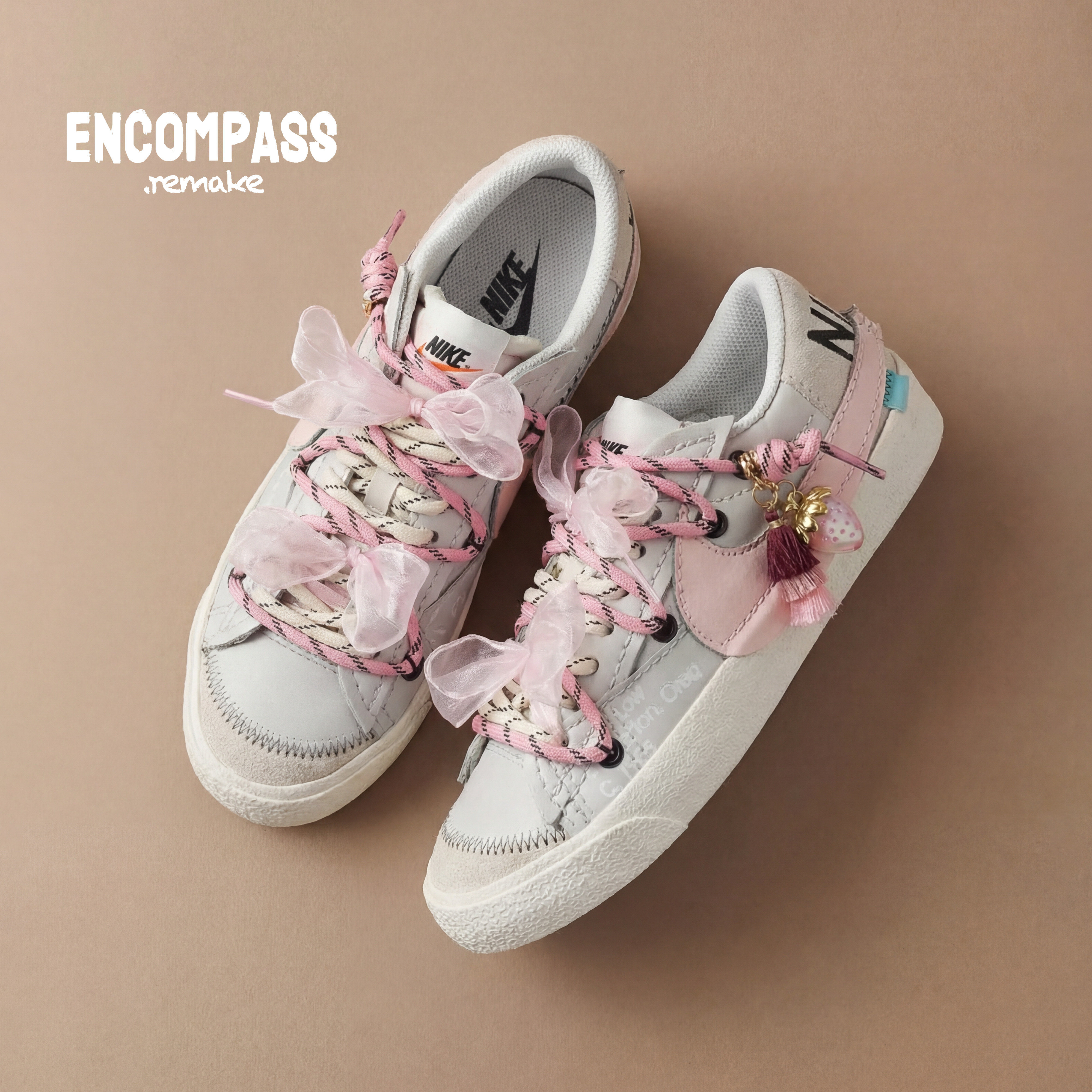 📚 NIKE/耐克Blazer Remake 粉色系草莓挂饰解构双鞋带 女 ENCOMPASS