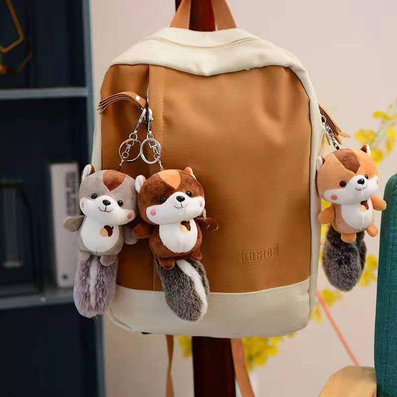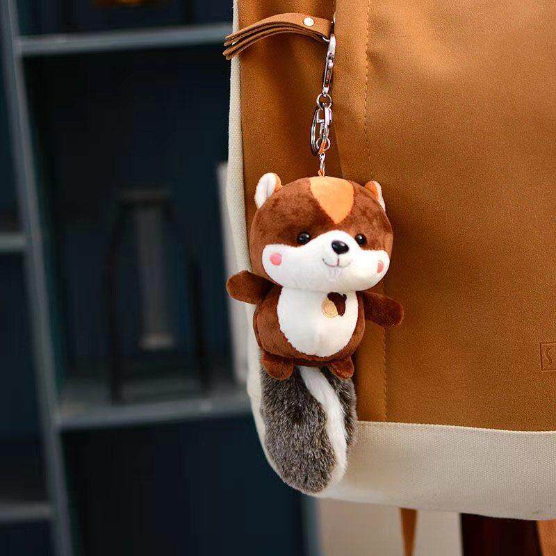 📚 新款坚果松鼠毛绒公仔钥匙扣ins卡通大尾巴松鼠挂饰书包挂件玩偶