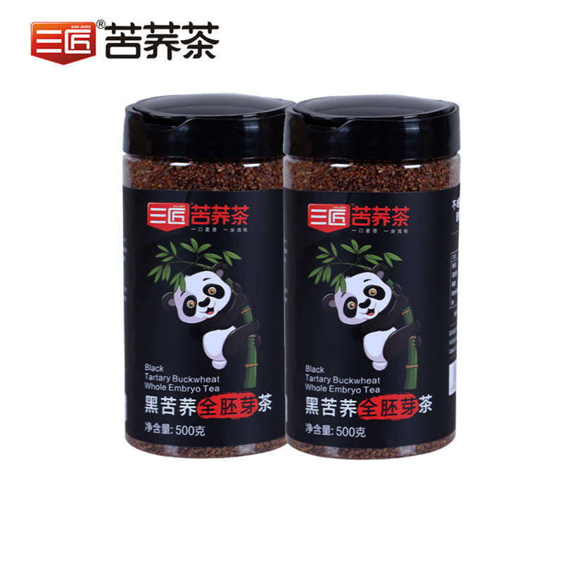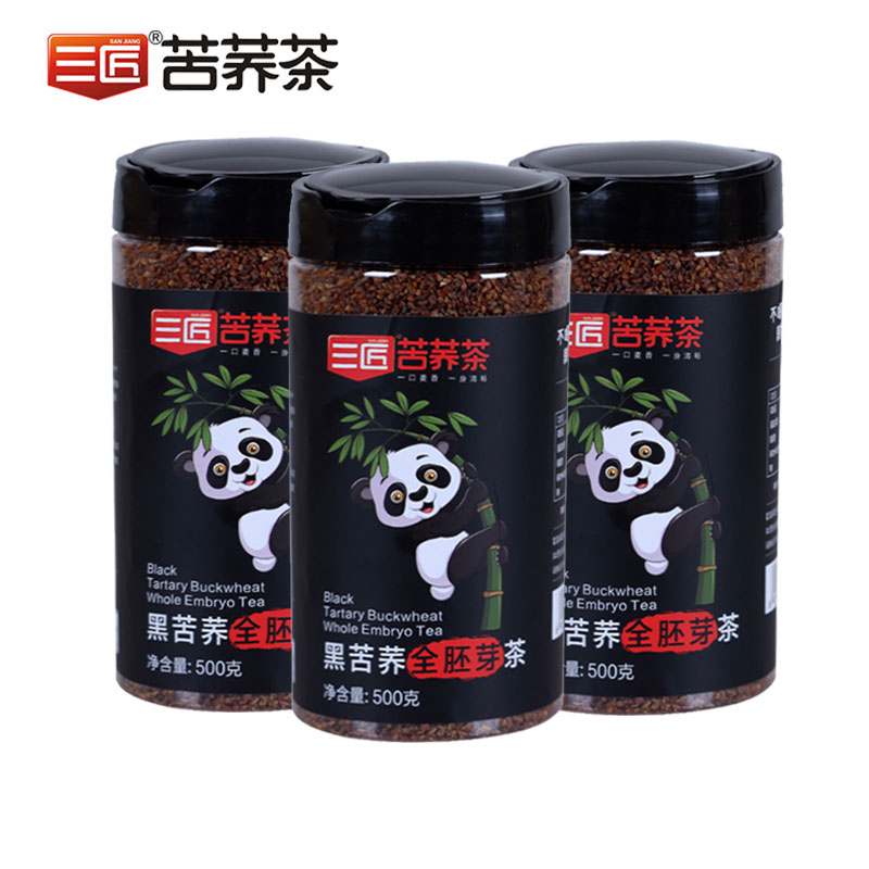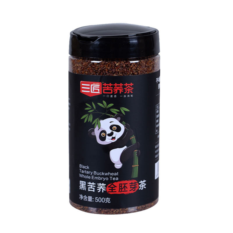 📚 三匠500g黑苦荞全胚芽茶 乐启熊猫罐装 苦荞麦香茶四川黑苦荞包邮