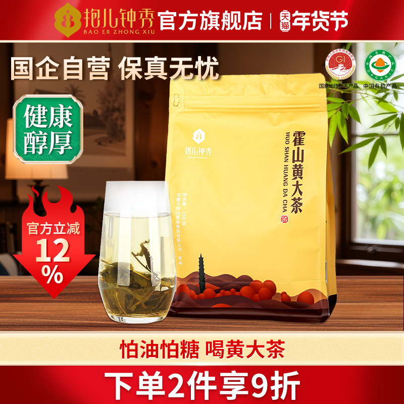 📚 抱儿钟秀霍山黄大茶黄茶安徽茶叶六安大叶茶袋装口粮茶老干烘250g