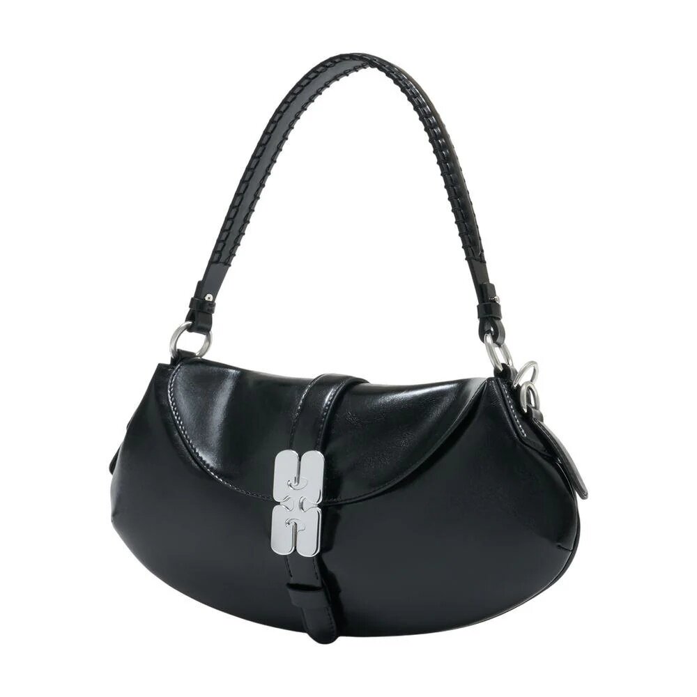 📚 GANNI 女士单肩包 B2070061 SS2026 黑色 Ganni Kat Baguette Sho
