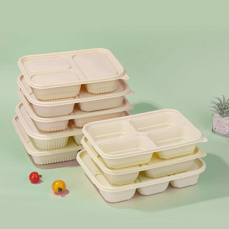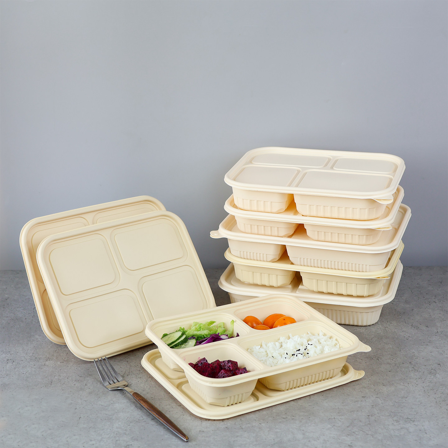 📚 可降解一次性餐盒玉米淀粉三格四格打包盒家用带饭食品级野餐饭盒