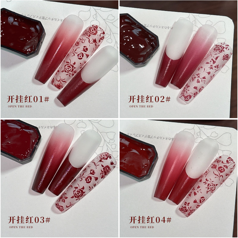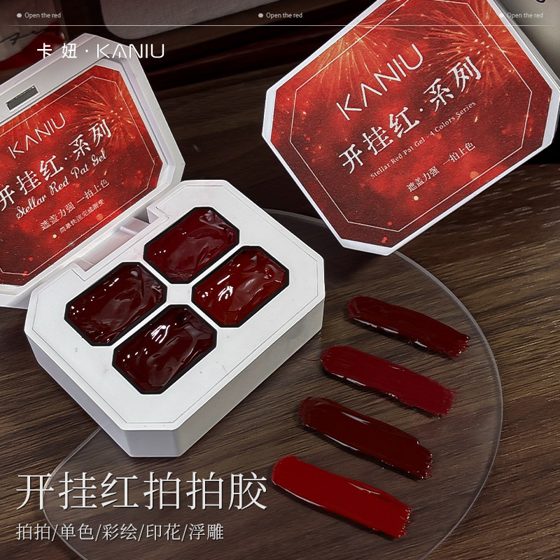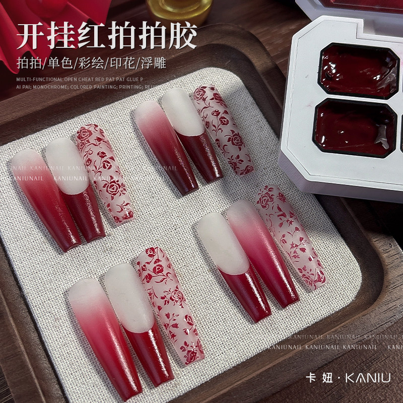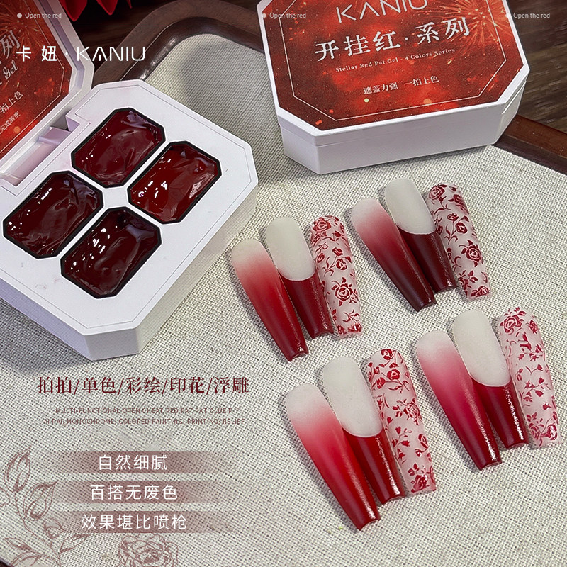 📚 卡妞四宫格开挂红色拍拍胶新年美甲高饱和晕染彩绘渐变显白甲油胶