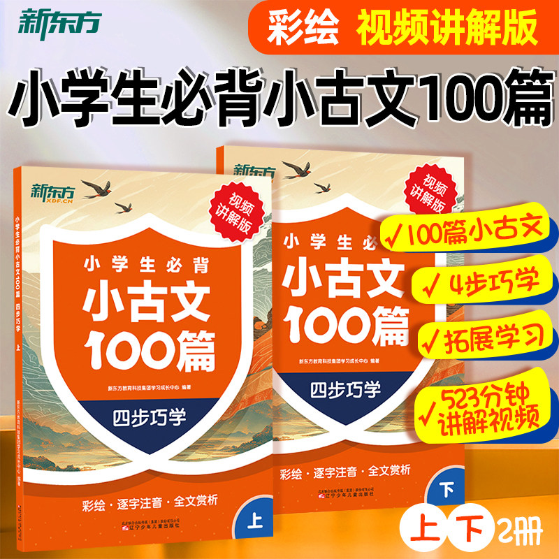 📚 【2册】新东方小古文100篇小学三四五六年级必背古诗文校内拓展阅读专项训练含音频视频阅读理解一百篇每日吃透小古文课文阅读专项