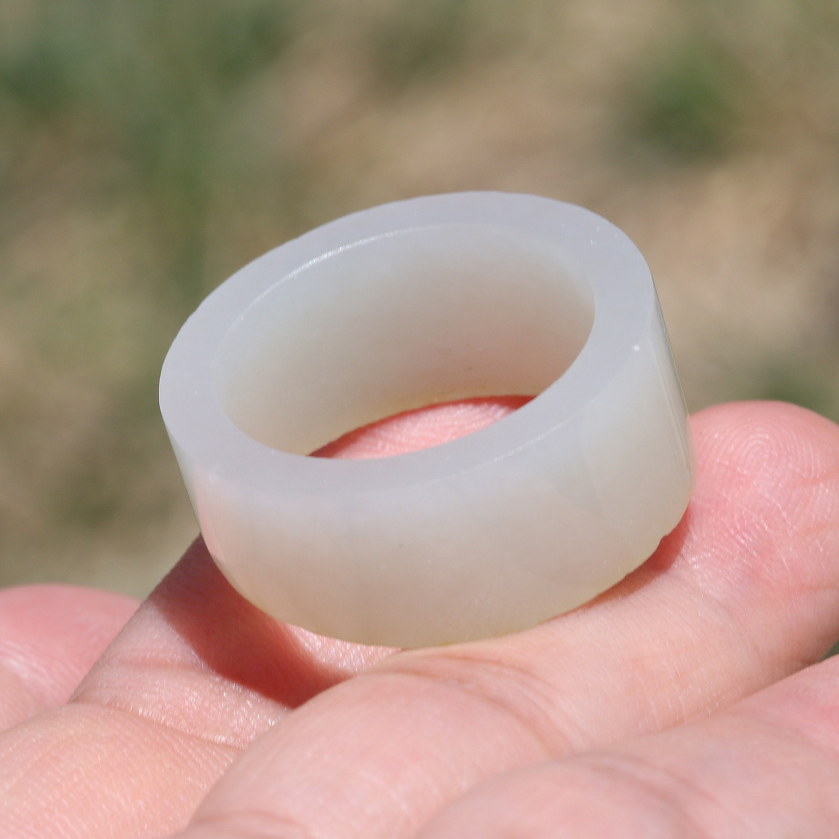 📚 【小胡子玉器】和田玉 籽料 洒金皮 原毛孔 白玉 20.7mm扳指 指环
