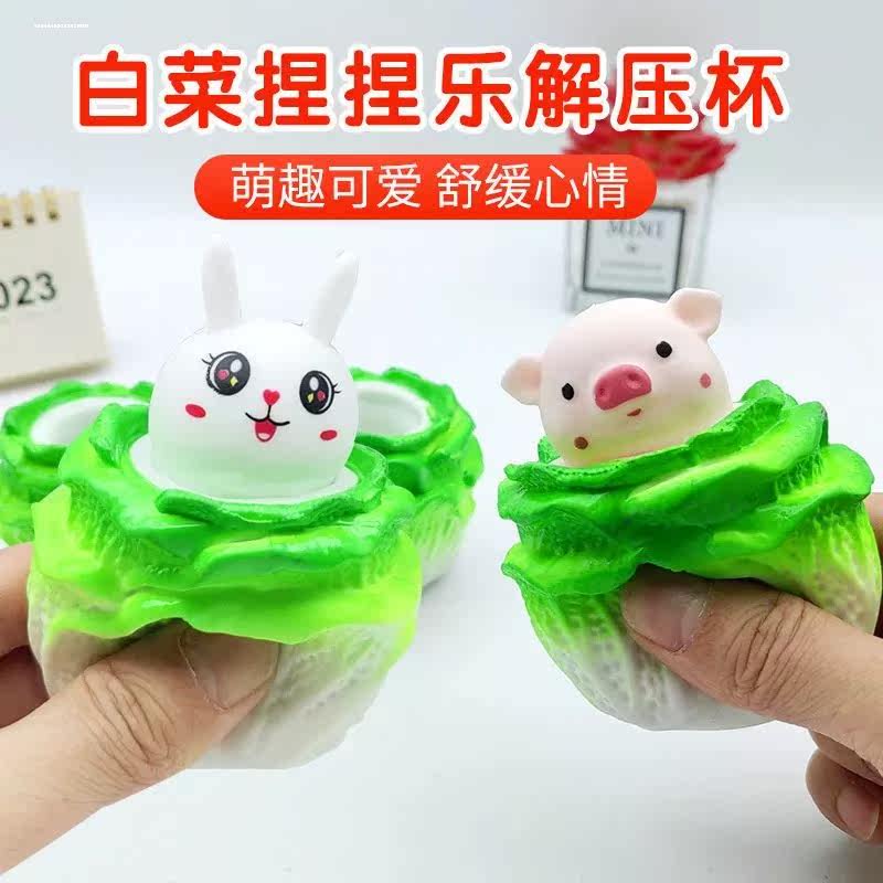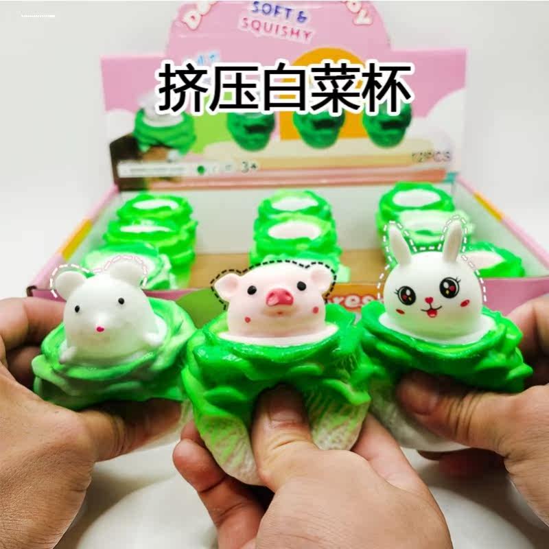 📚 白菜猪挤压杯胡萝卜小兔子捏捏乐解压玩具老鼠婴儿宝宝手捏球奇葩