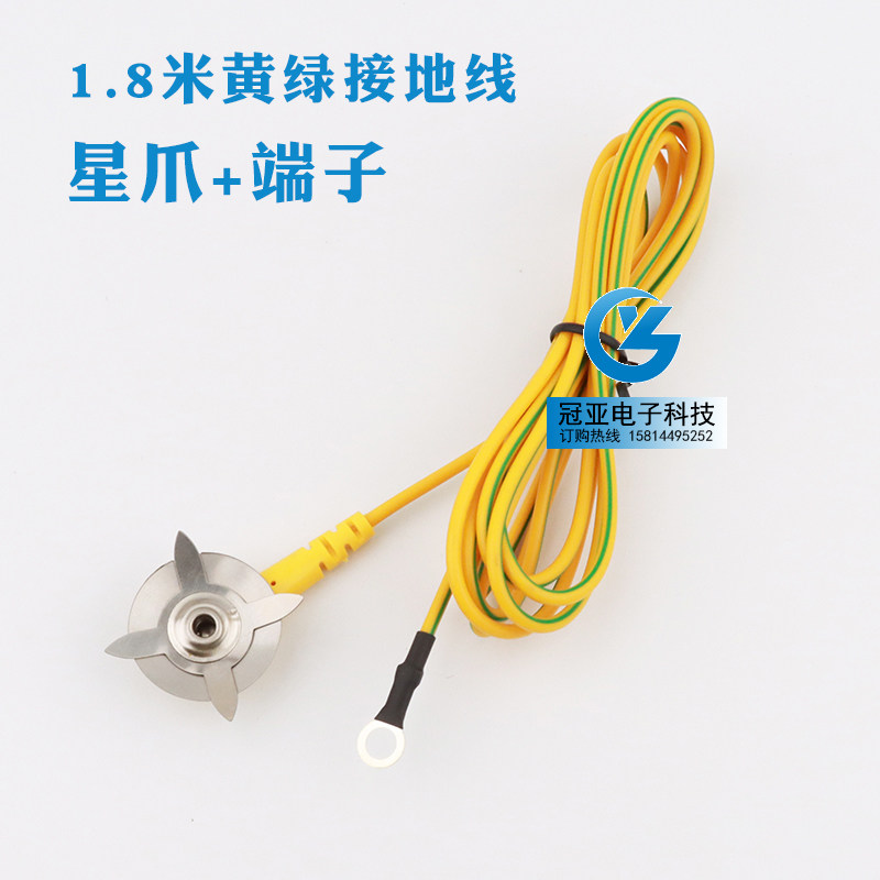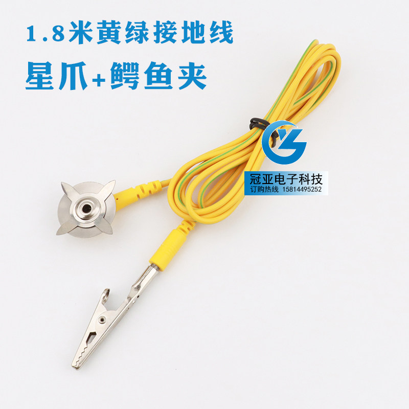 📚 黄绿接地线扣PVC线1.8米接地线防静电接端子星爪鳄鱼夹双夹双星