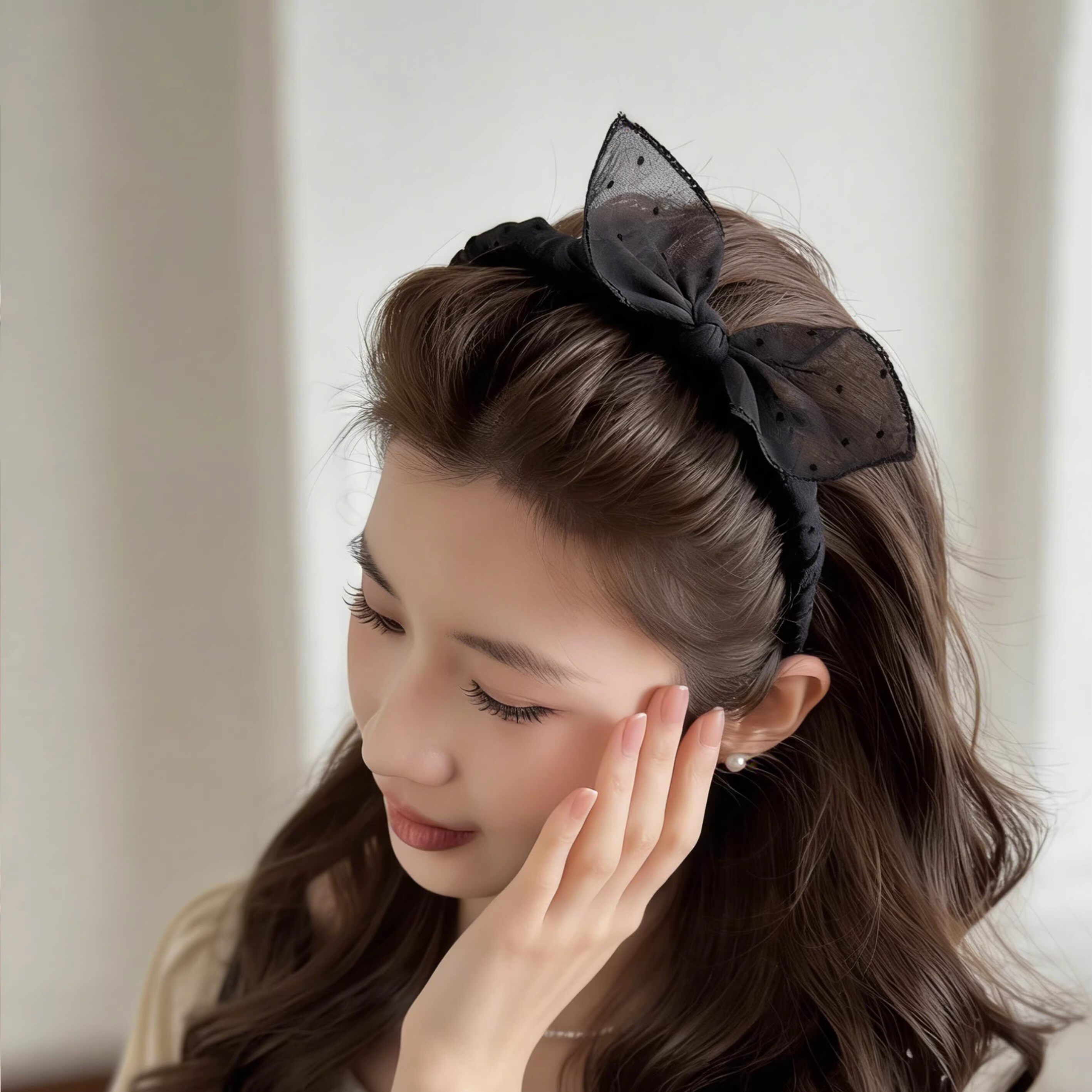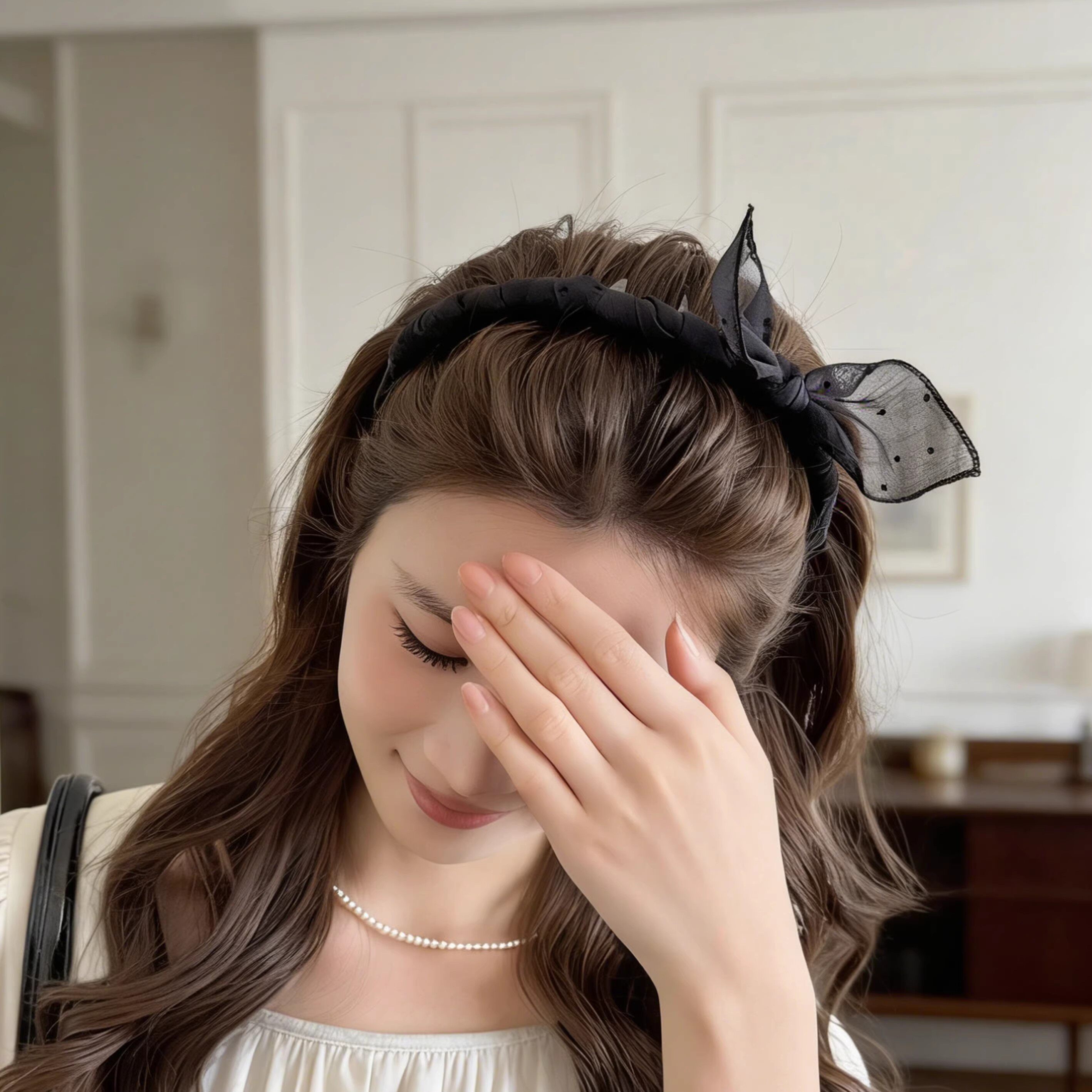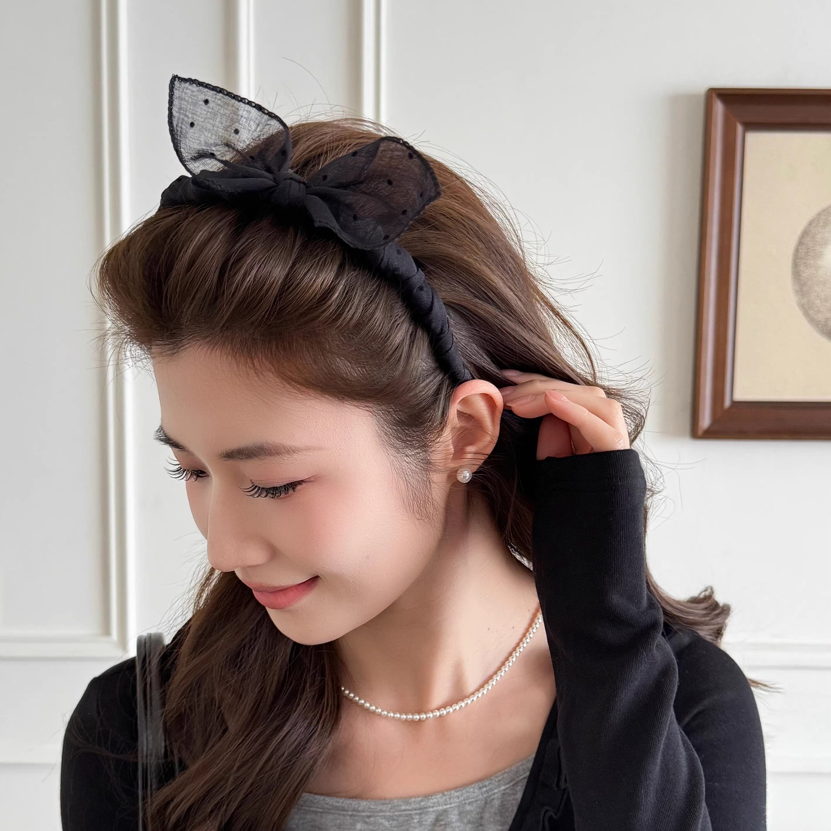 📚 黑色发卡发箍高颅顶带齿兔耳朵波点洗脸头箍蝴蝶结可爱洋气压发捆
