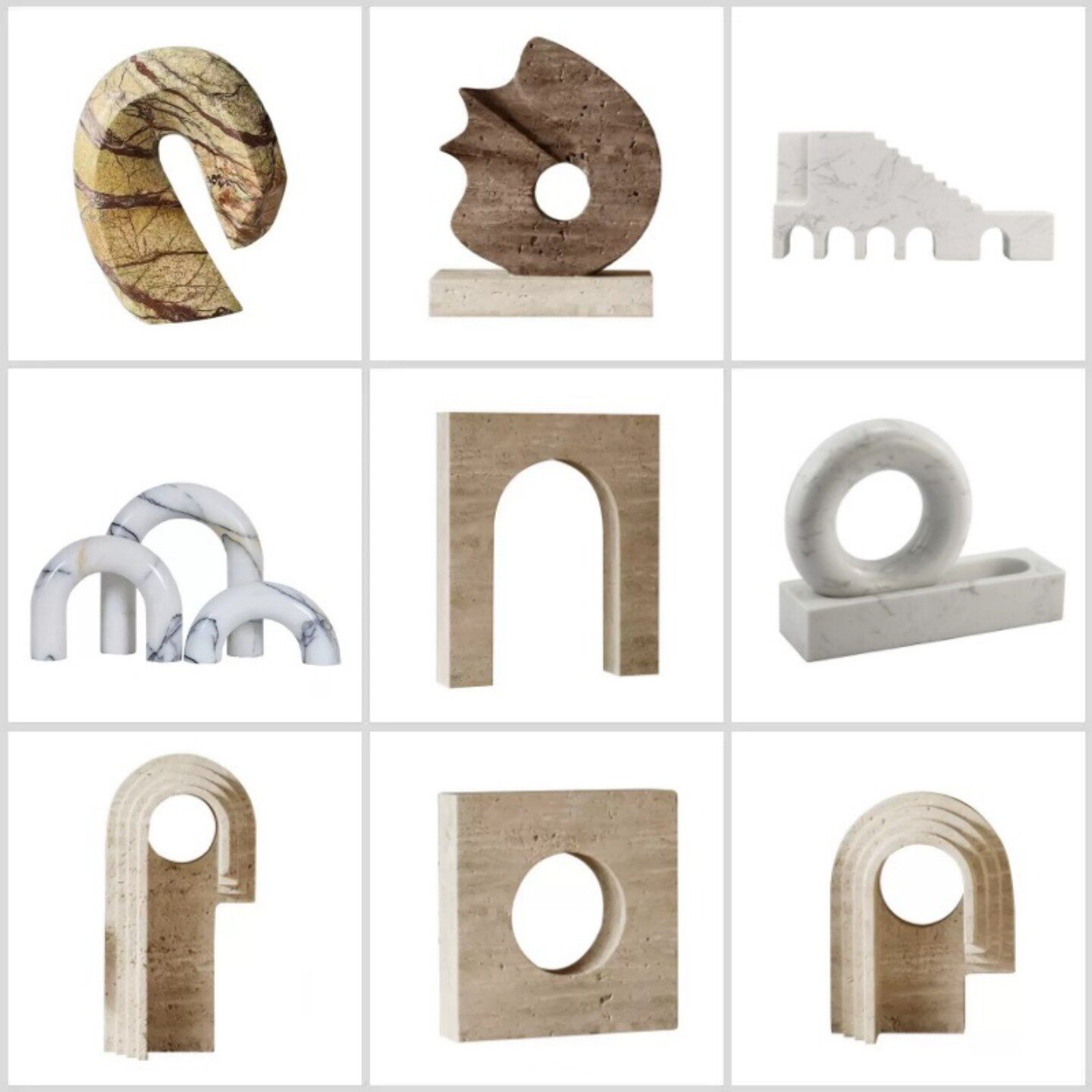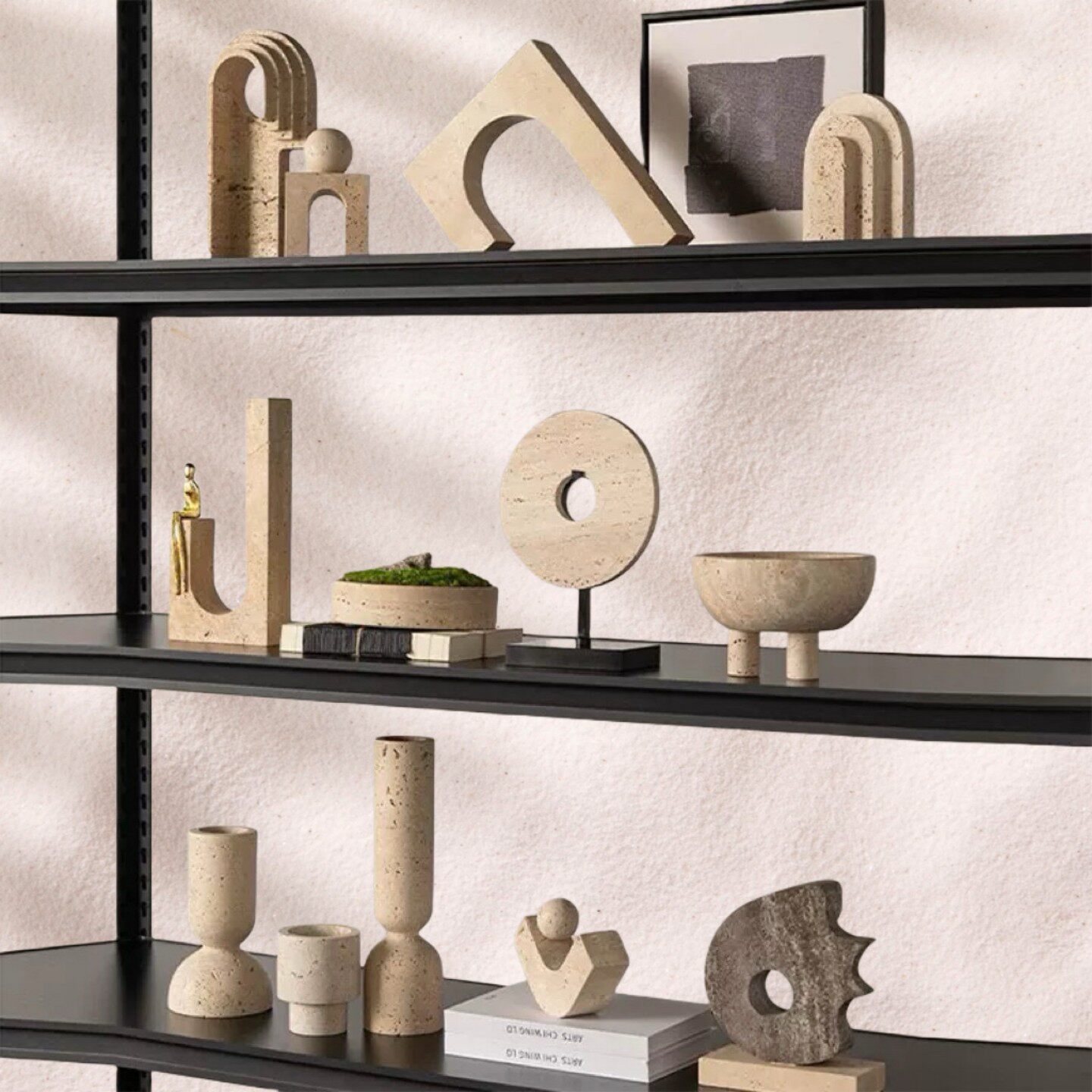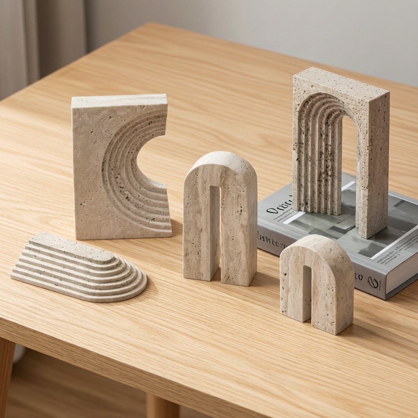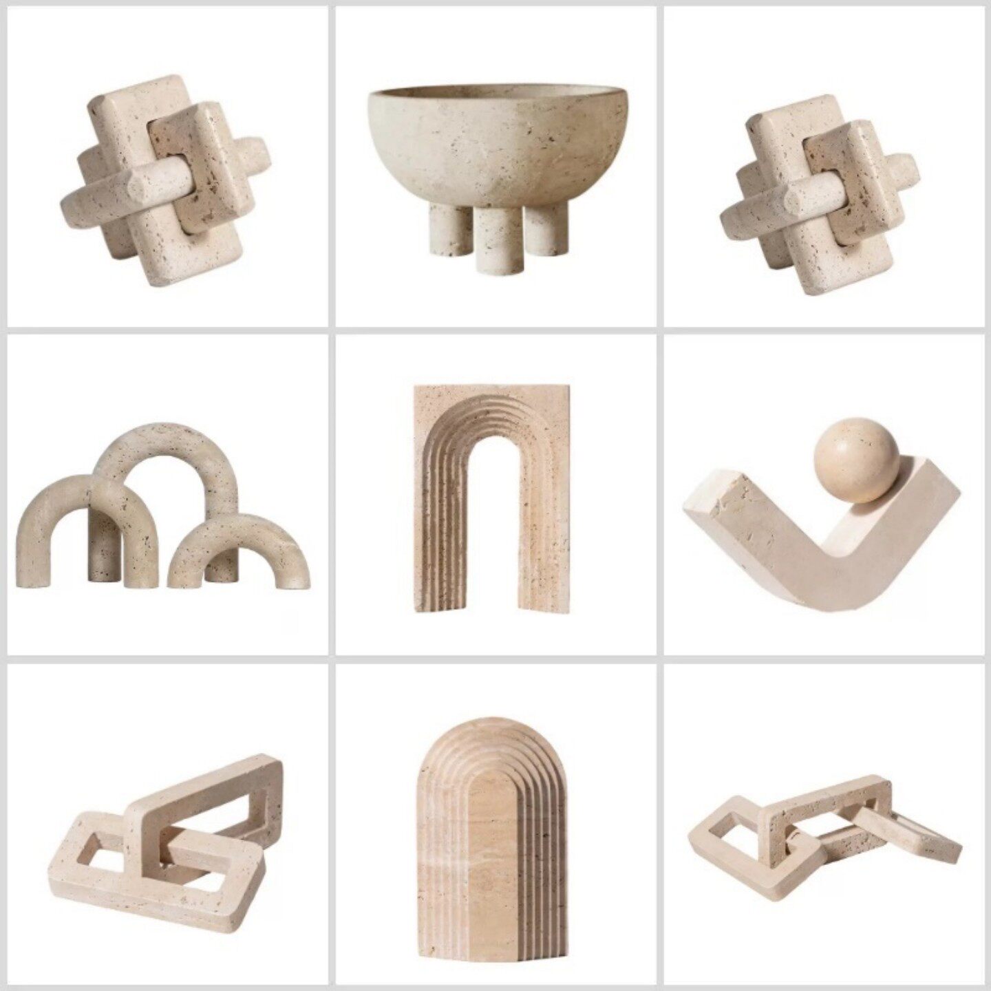 📚 创意几何黄洞石桌面摆件侘寂风样板房客厅装饰高级感天然石工艺品