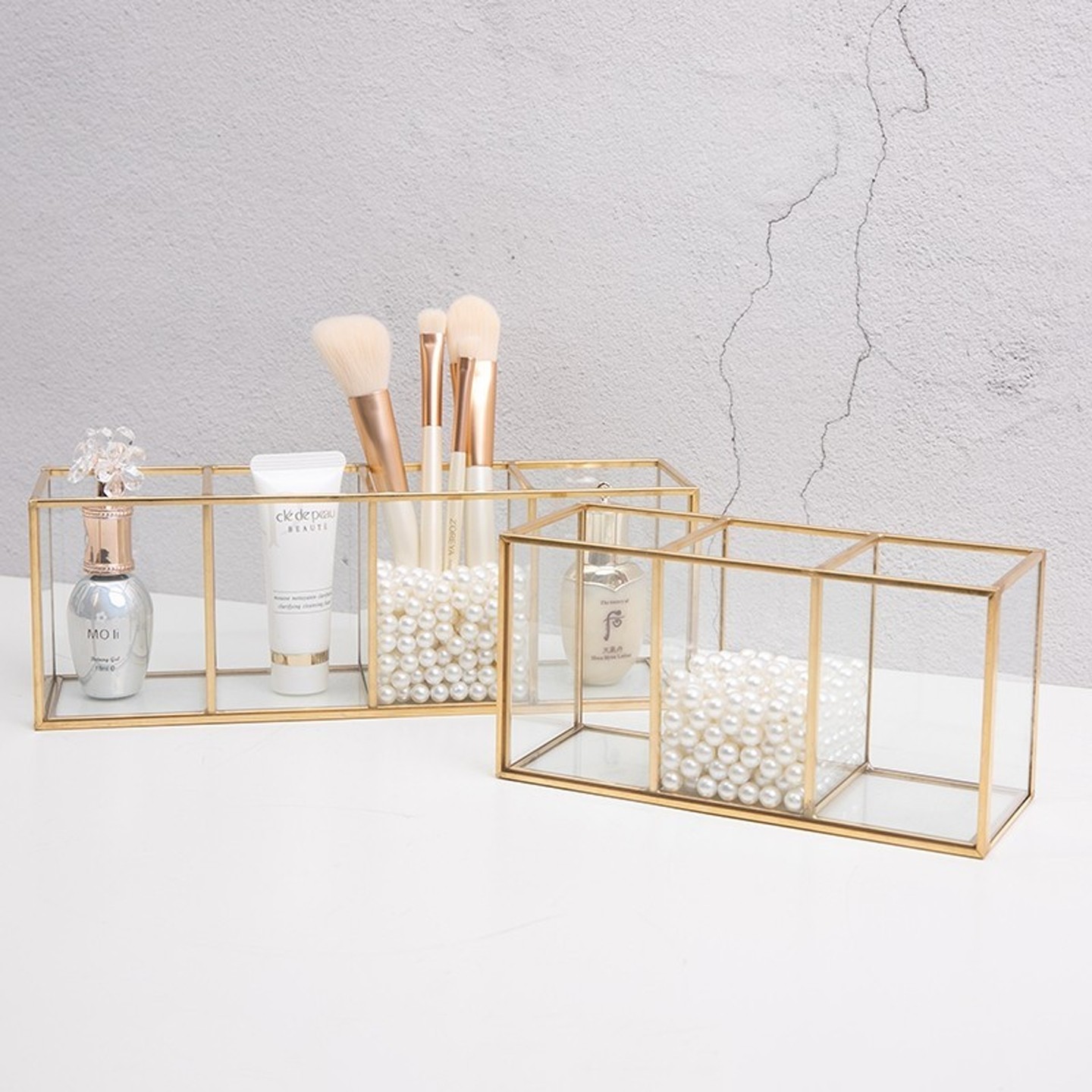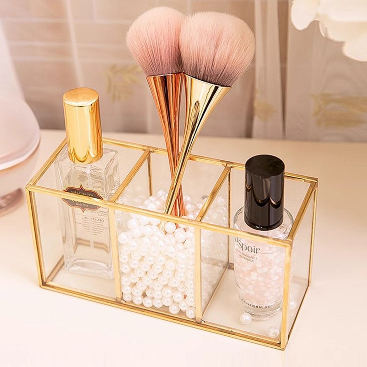 📚 简约欧式玻璃美妆化妆刷收纳桶 笔筒收纳化妆品桌面收纳盒笔刷桶