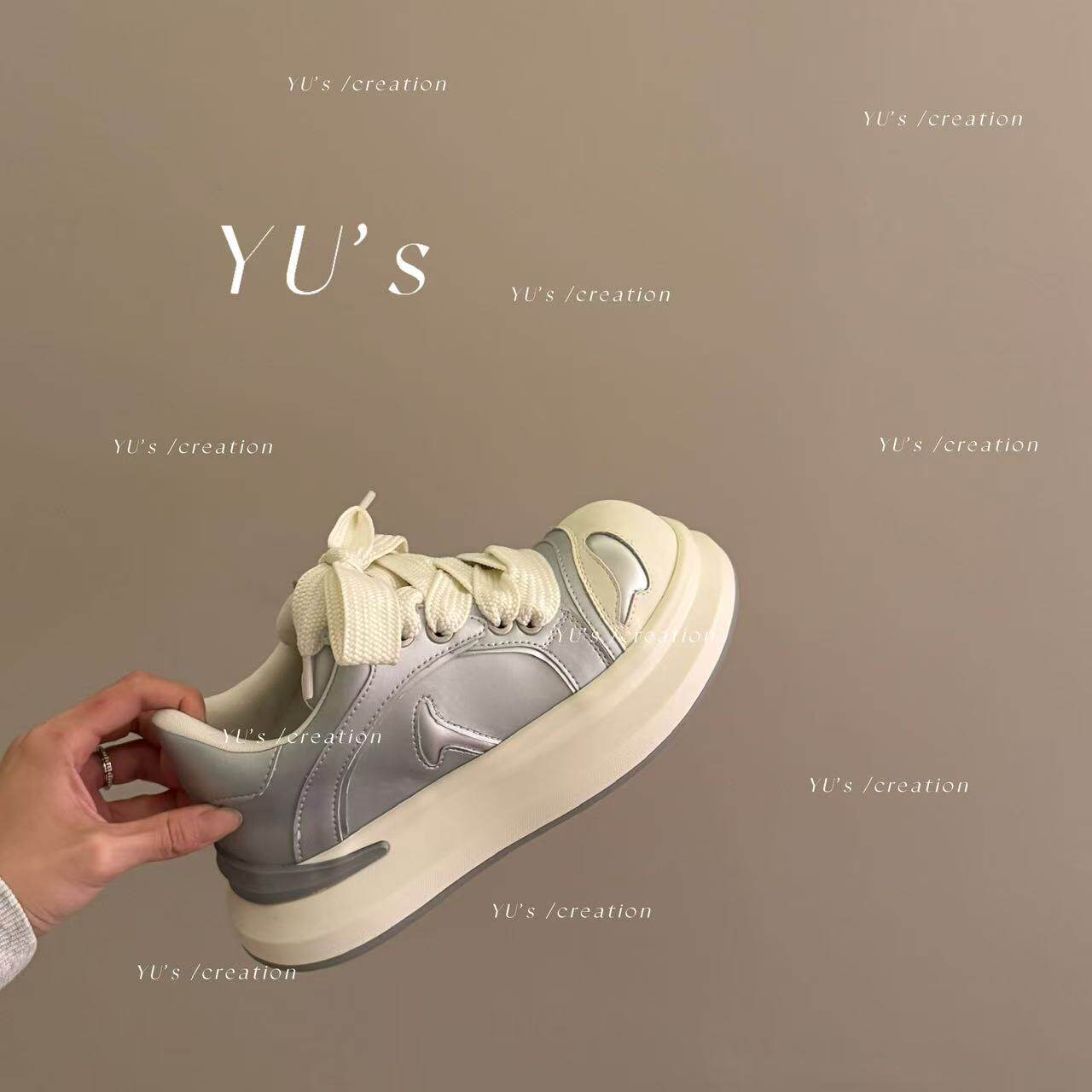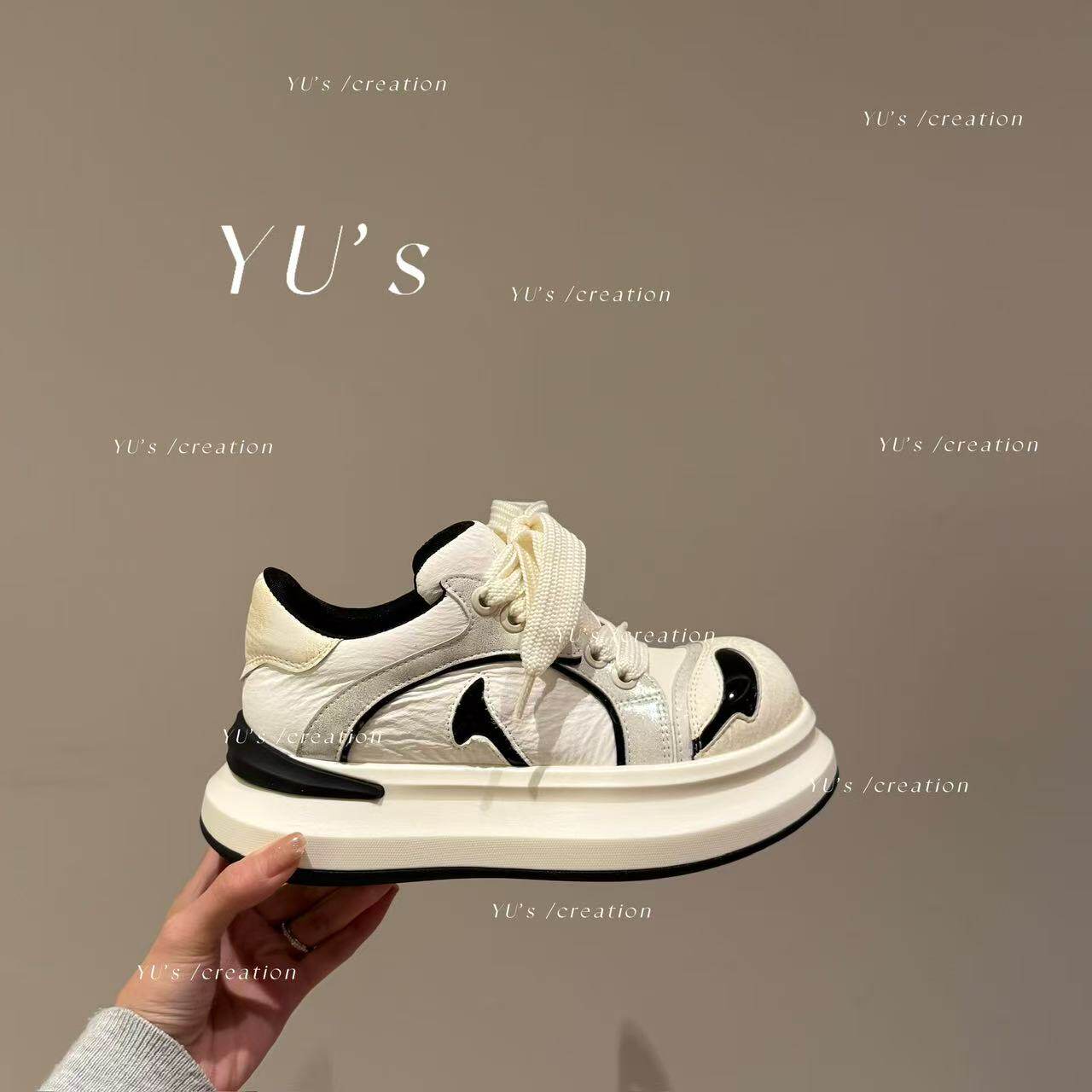 📚 H55女鞋2026新款熊猫鞋后现代主义增高休闲百搭厚底板鞋银大头鞋