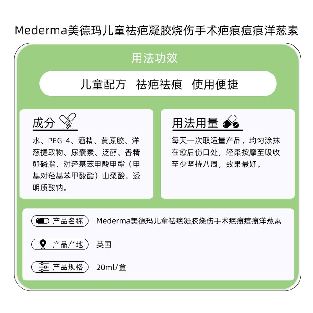📚 欧洲直邮Mederma美德玛儿童祛疤凝胶烧伤手术疤痕素洋葱提取物