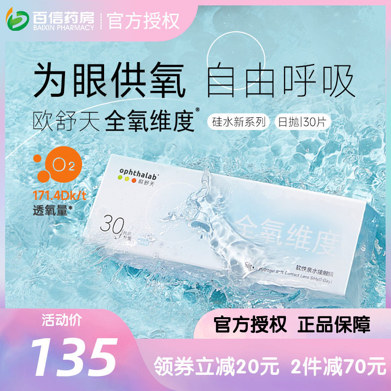 📚 欧舒天全氧维度硅水凝胶近视隐形眼镜透明日抛30片装水润清晰