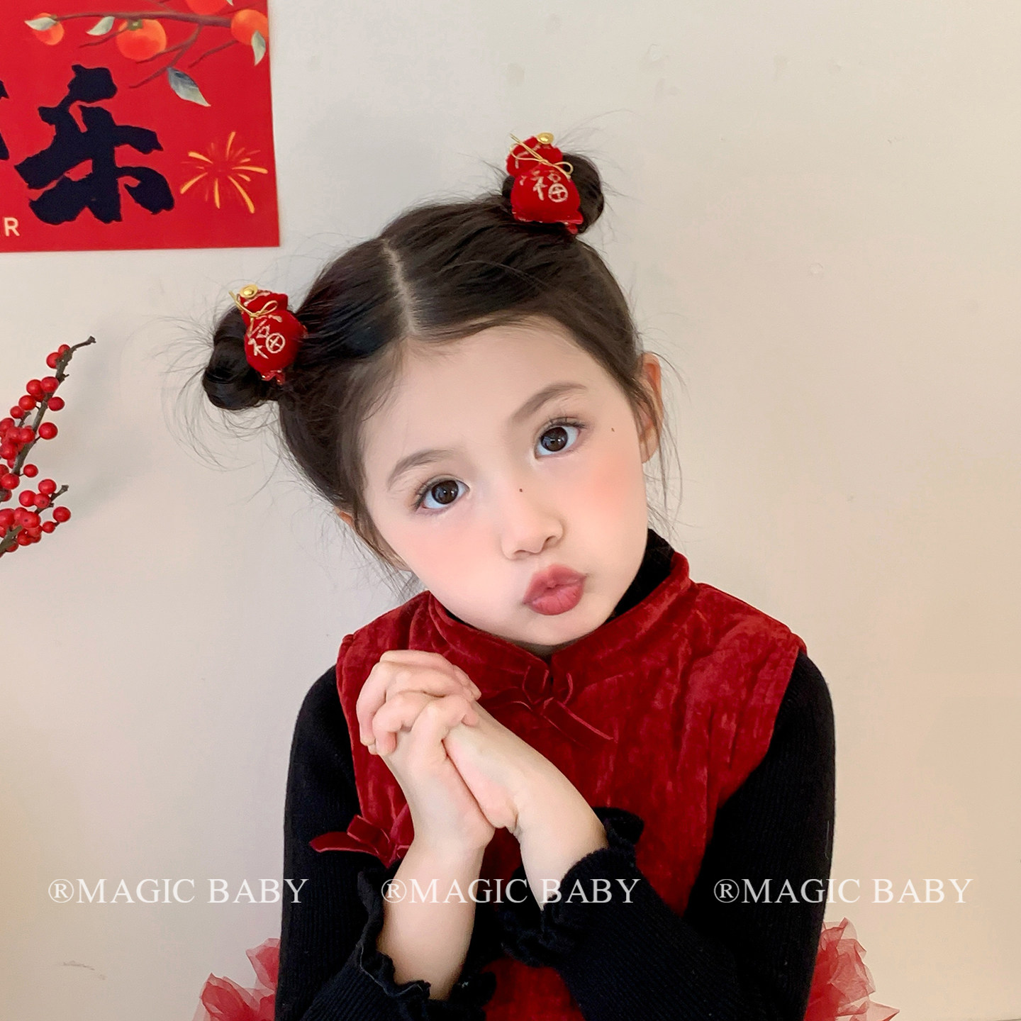 📚 过年喜庆红色丝绒小福袋发夹儿童精致高级感头绳宝宝新年皮筋夹子