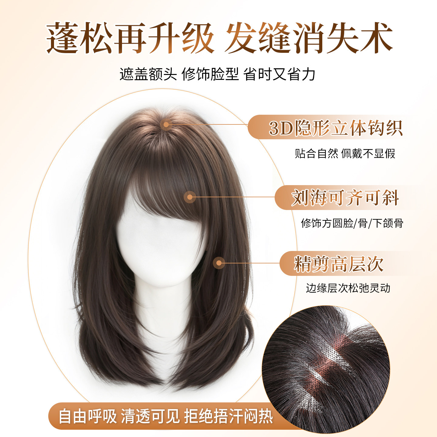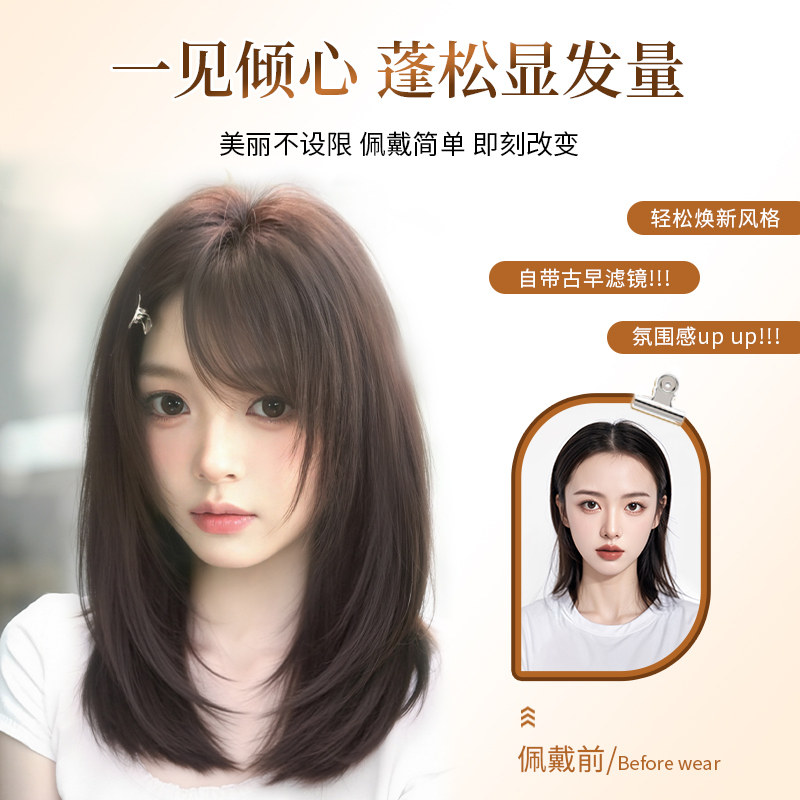 📚 不用戴发网假发女片头顶增发量仿真发斜刘海全头套高层次锁骨发