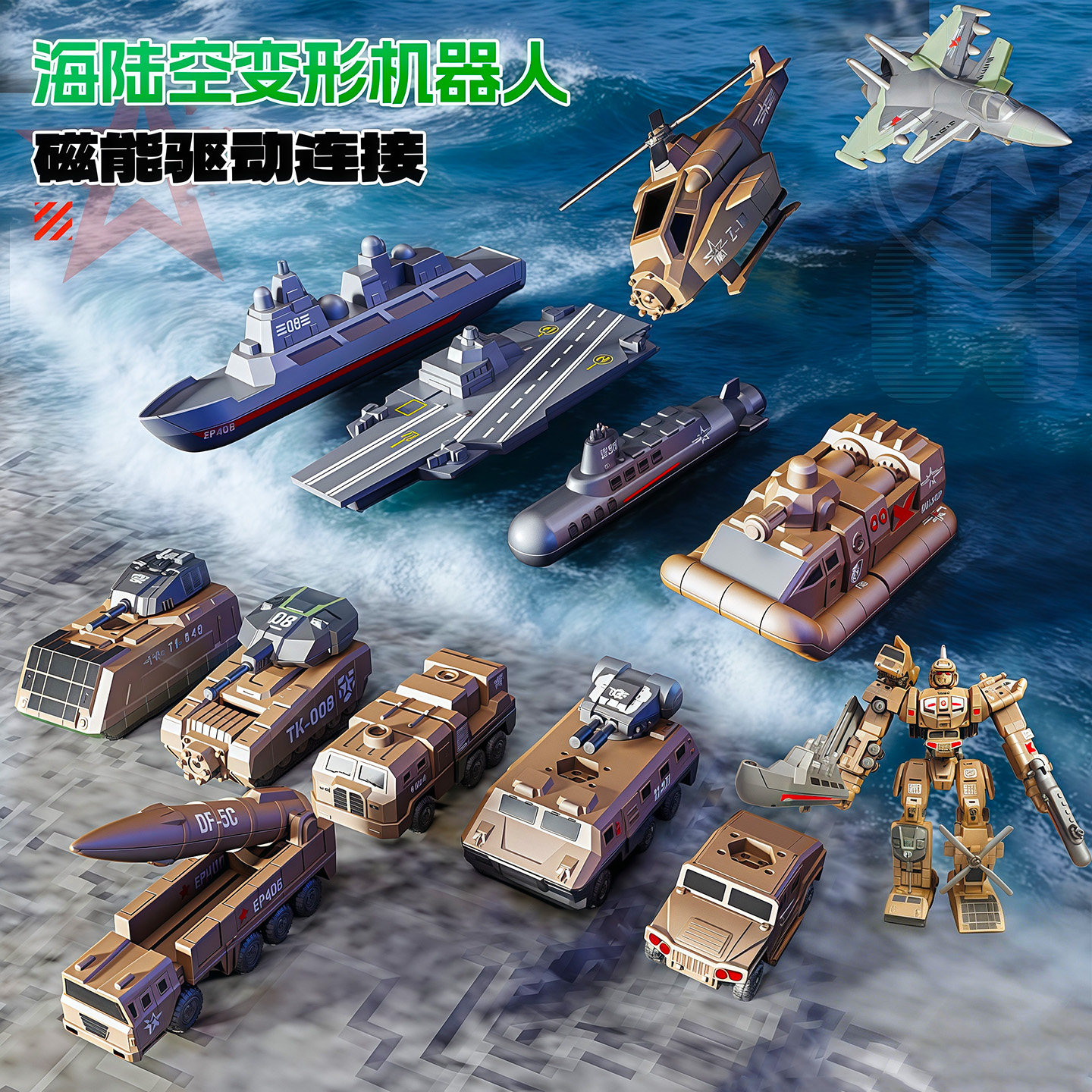 📚 军事合体变形机器人玩具儿童磁吸积木铁甲汽车人套装男孩男童礼物