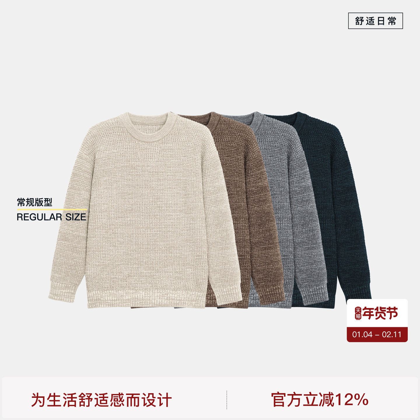 📚 BODYDREAM毛衣男纱线混纺休闲套头衫慵懒针织衫/领口大身反织设计