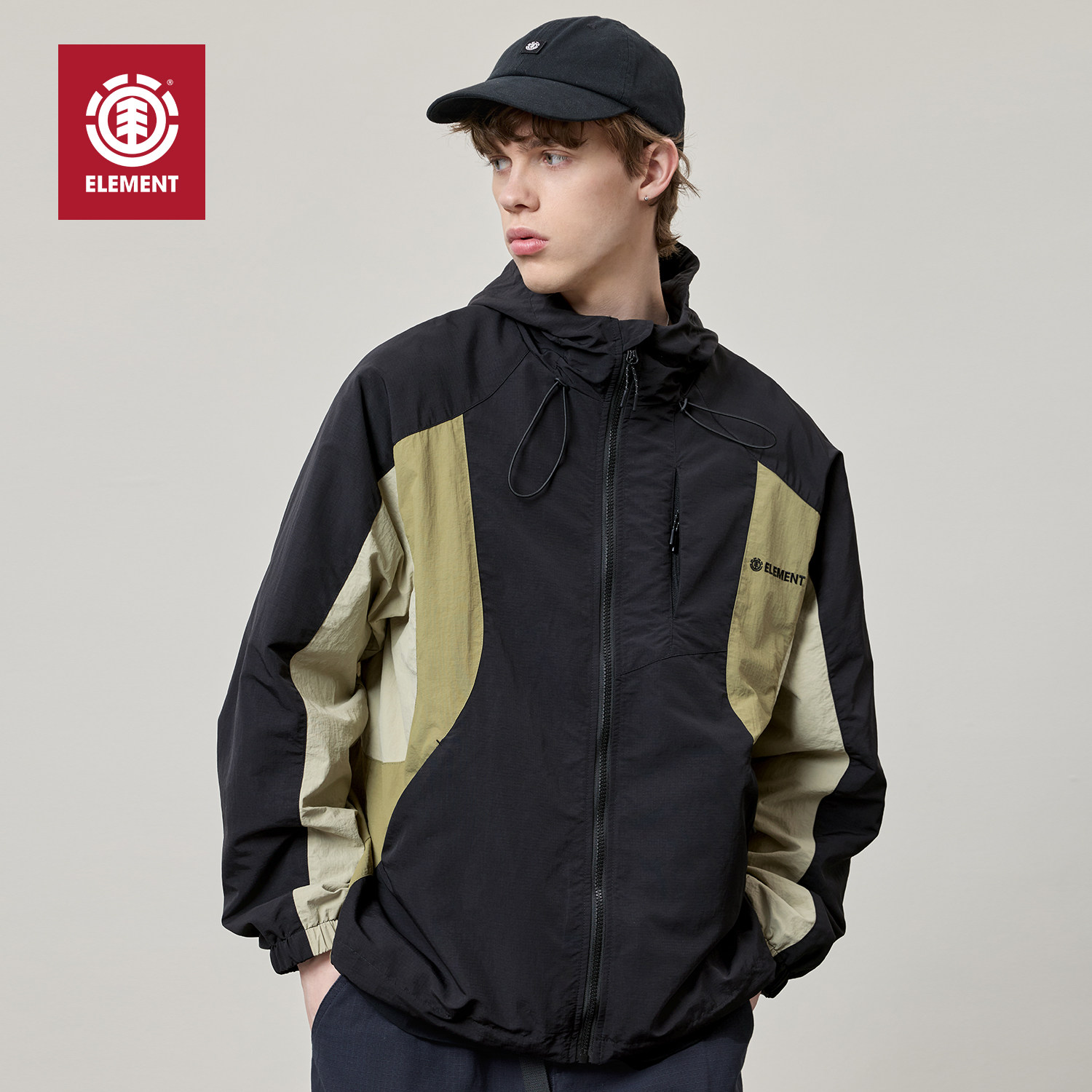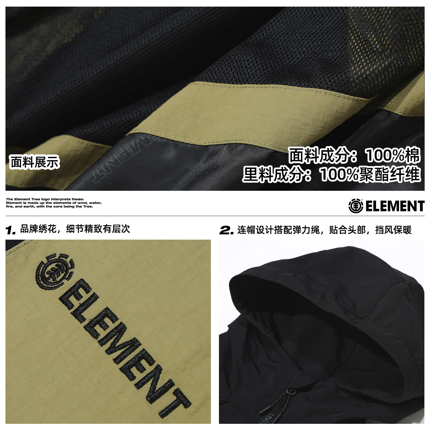 📚 美国ELEMENT滑板连帽夹克男复古宽松黑色防风户外运动休闲外套潮