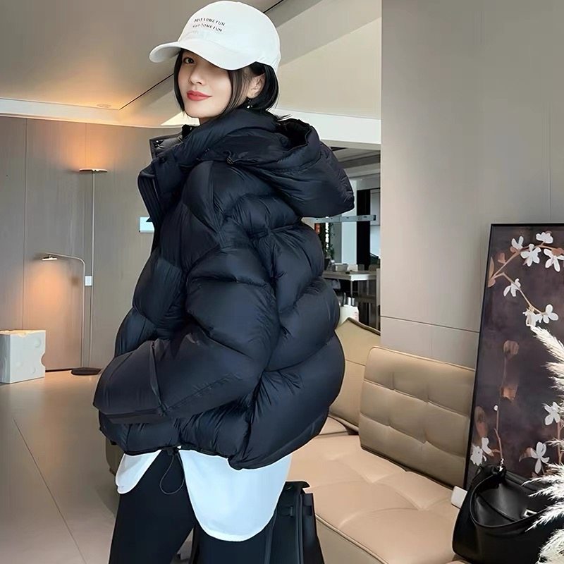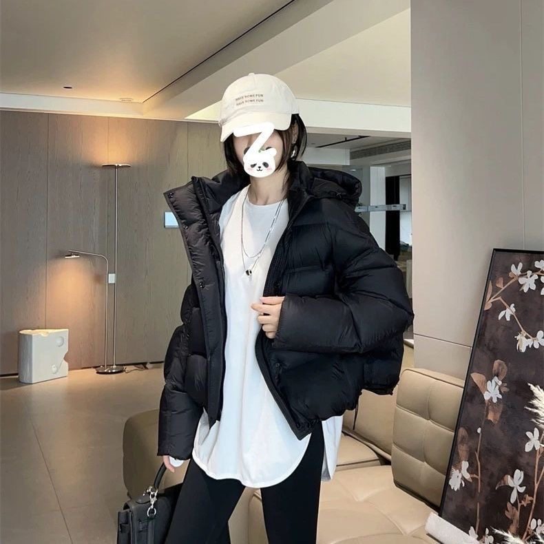 📚 大码胖MM冬季羽绒服女短款连帽宽松韩版泡芙小个子面包服白鸭绒