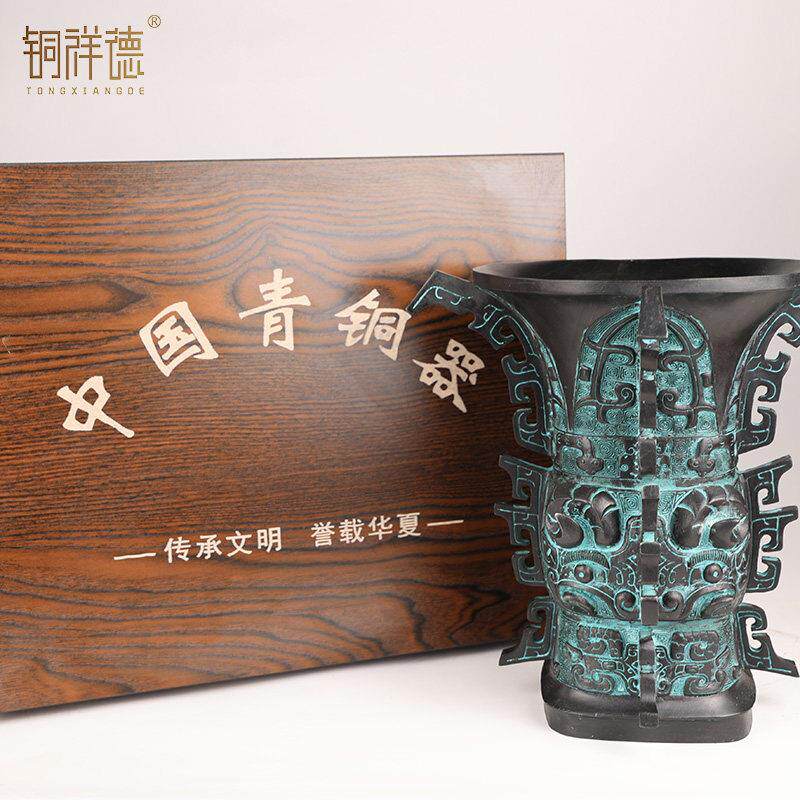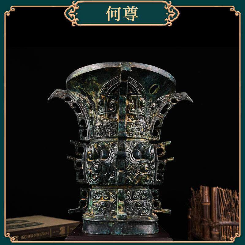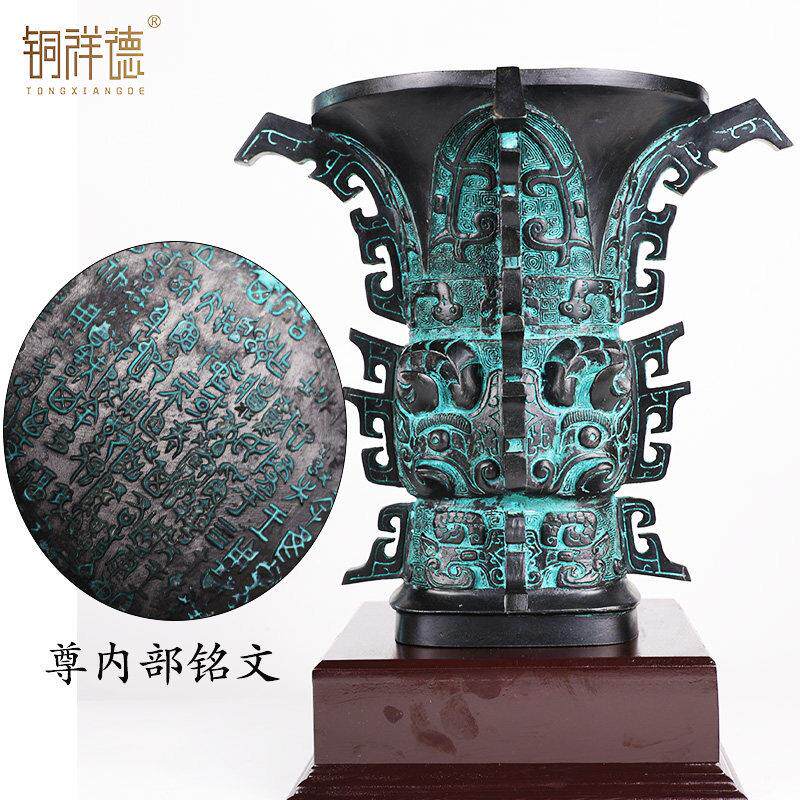 📚 何尊青铜器纯铜新中国尊铜尊博古架办公室铜工艺品摆件送礼佳品