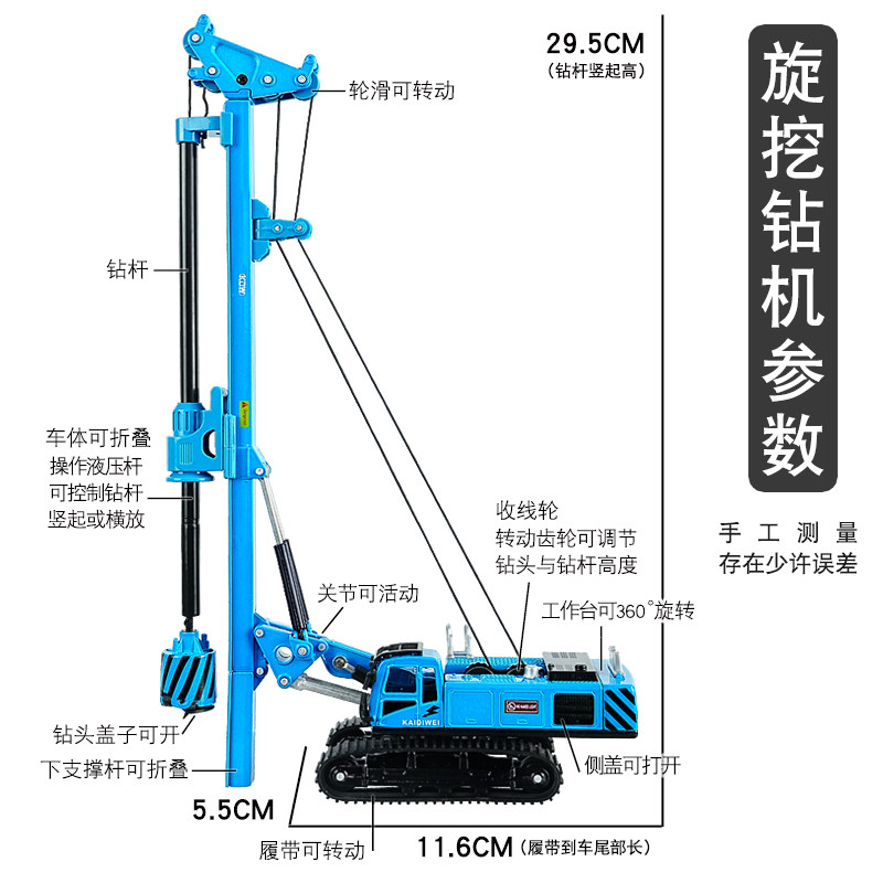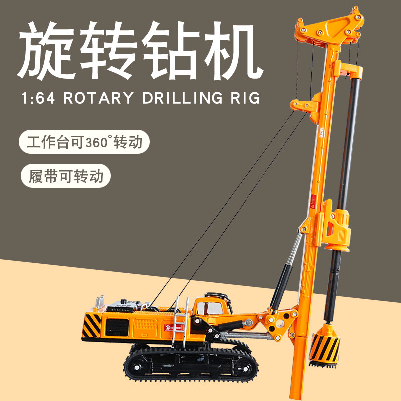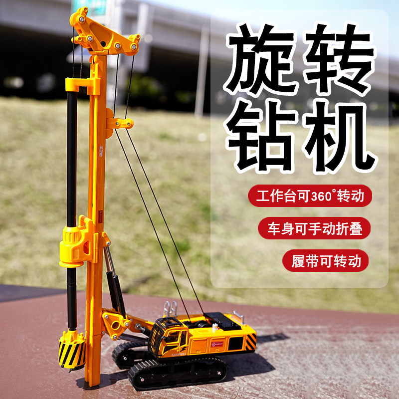 📚 凯迪威合金1:64旋转钻机模型仿真旋挖打桩机打地基男孩工程车玩具