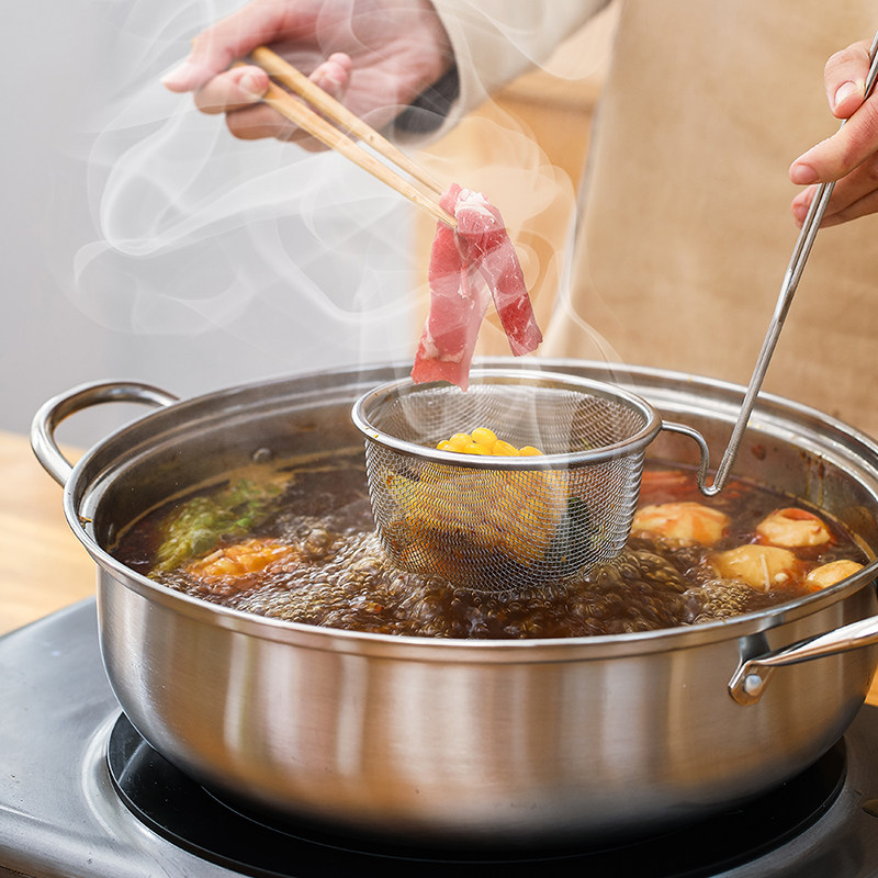 📚 家用厨房201不锈钢火锅漏勺食品级过滤网防烫捞网可挂设计