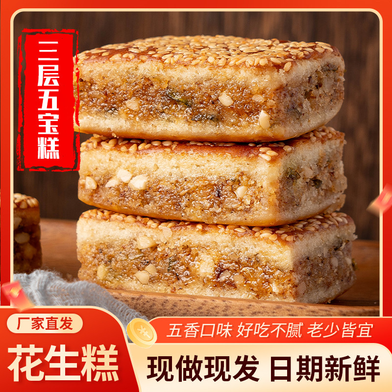 📚 五香三层糕花生糕芝麻糕老式传统麻饼纯手工糕点五仁馅饼零食批发