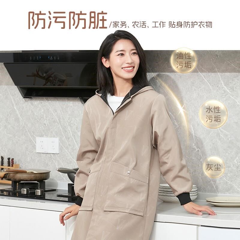 📚 防水加绒加厚罩衣女冬季2024新款干活穿的工作服厨房防油长袖围裙