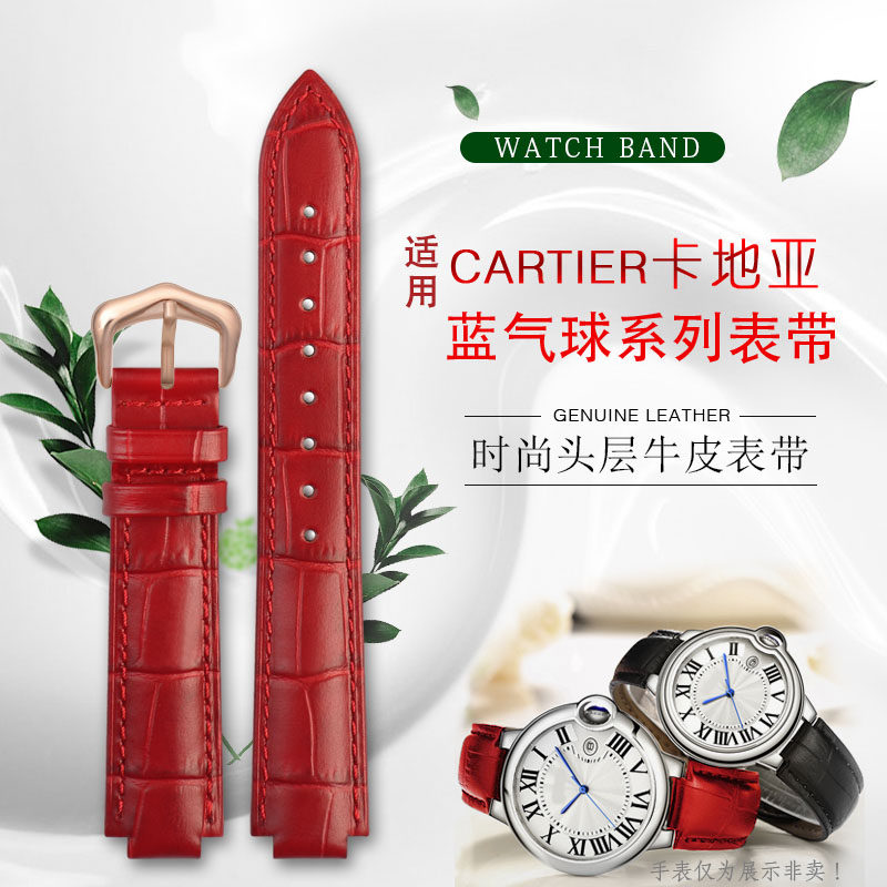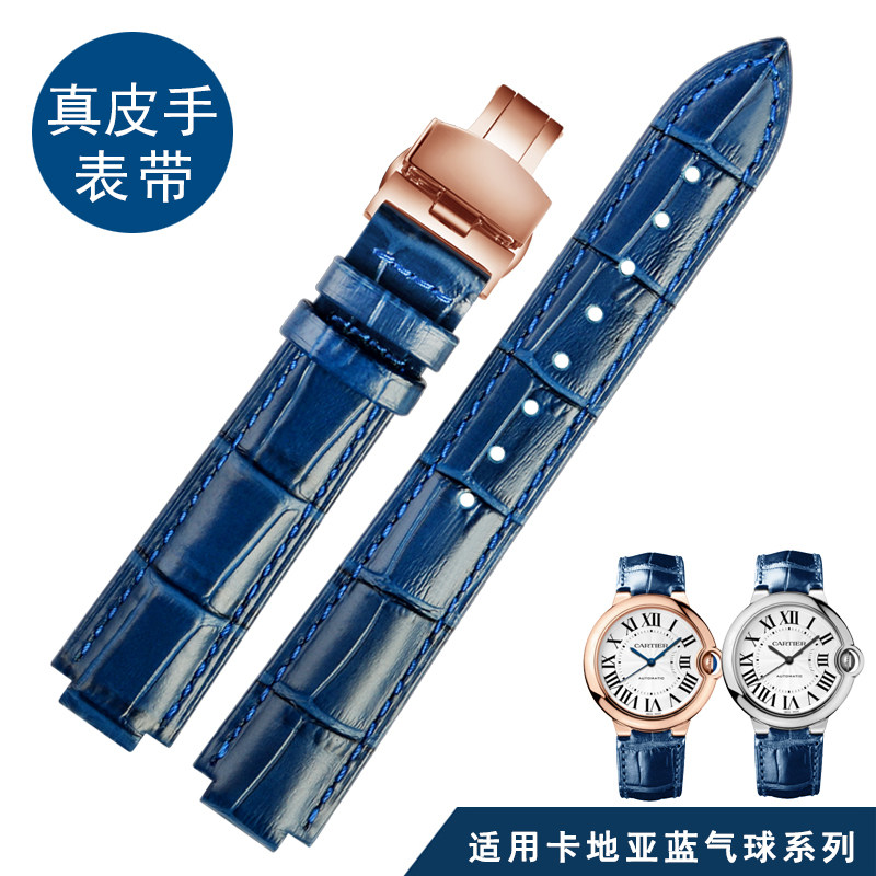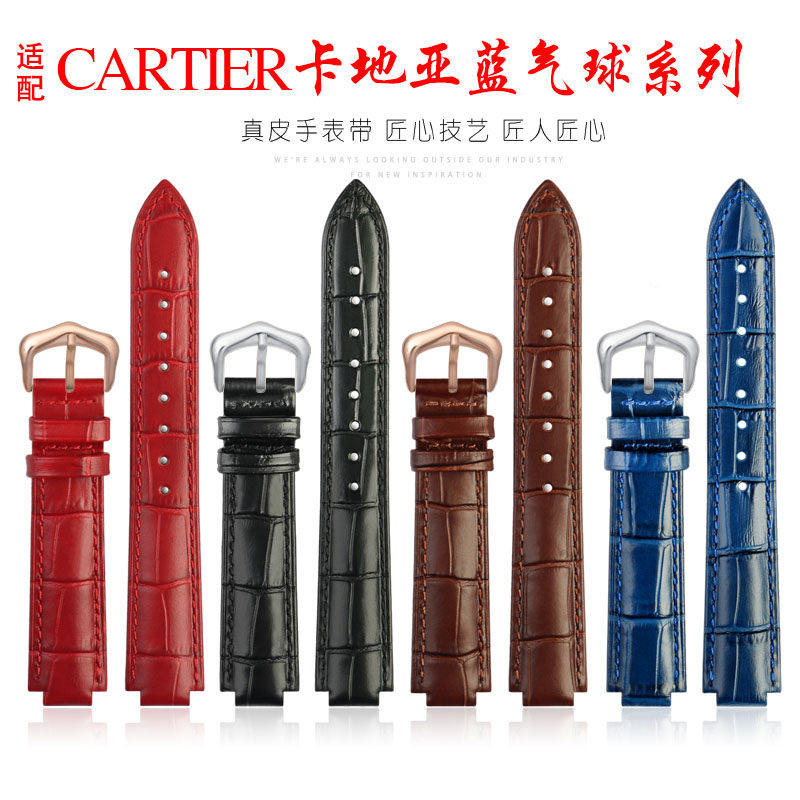 📚 适配卡地亚Cartier真皮手表带女表链蓝气球针扣凸口牛皮表带18MM