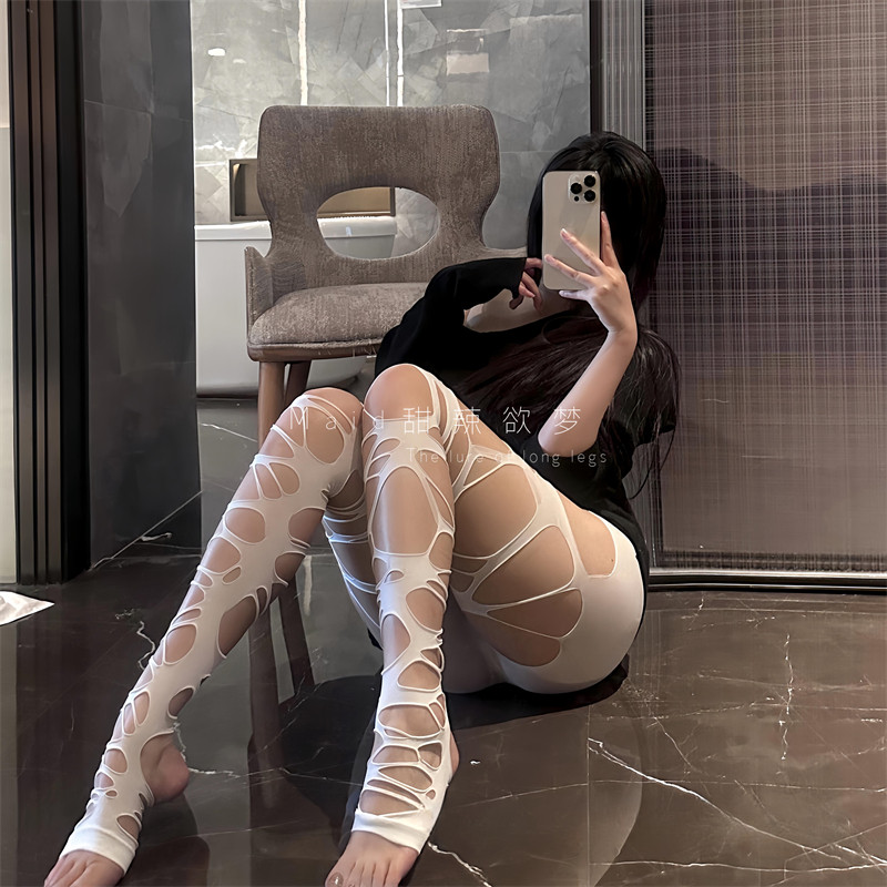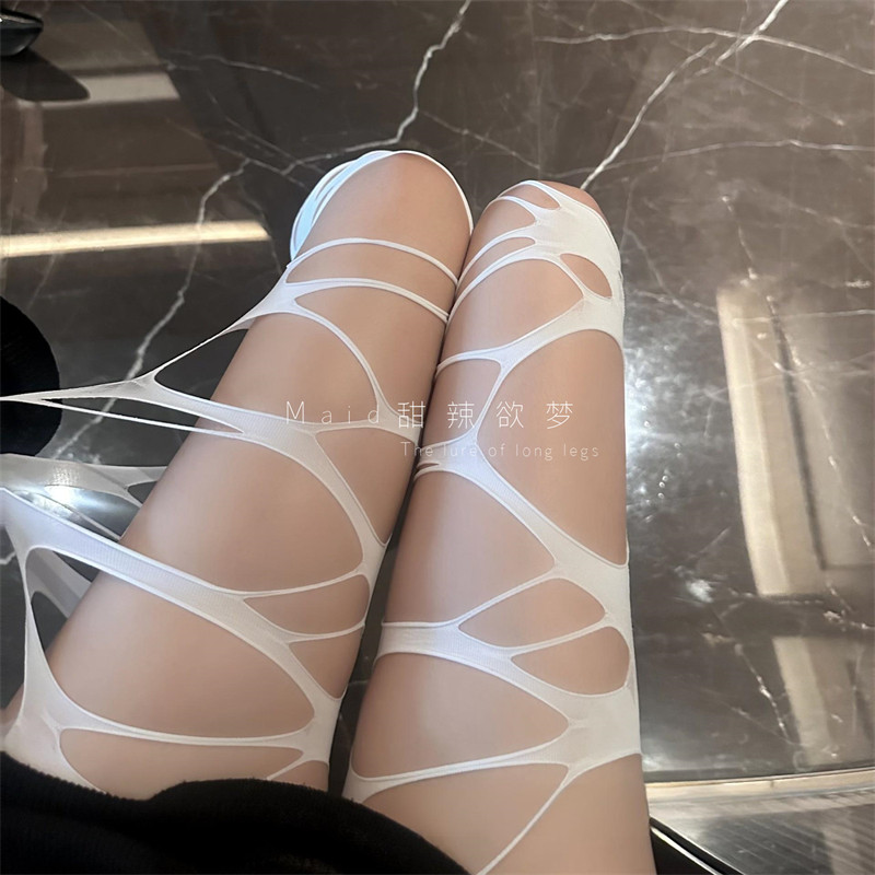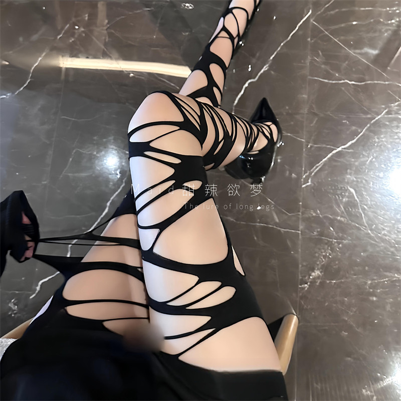 📚 夏网红纯欲性感黑丝美腿个性勒肉感破洞网袜辣妹丝袜女情调连裤袜