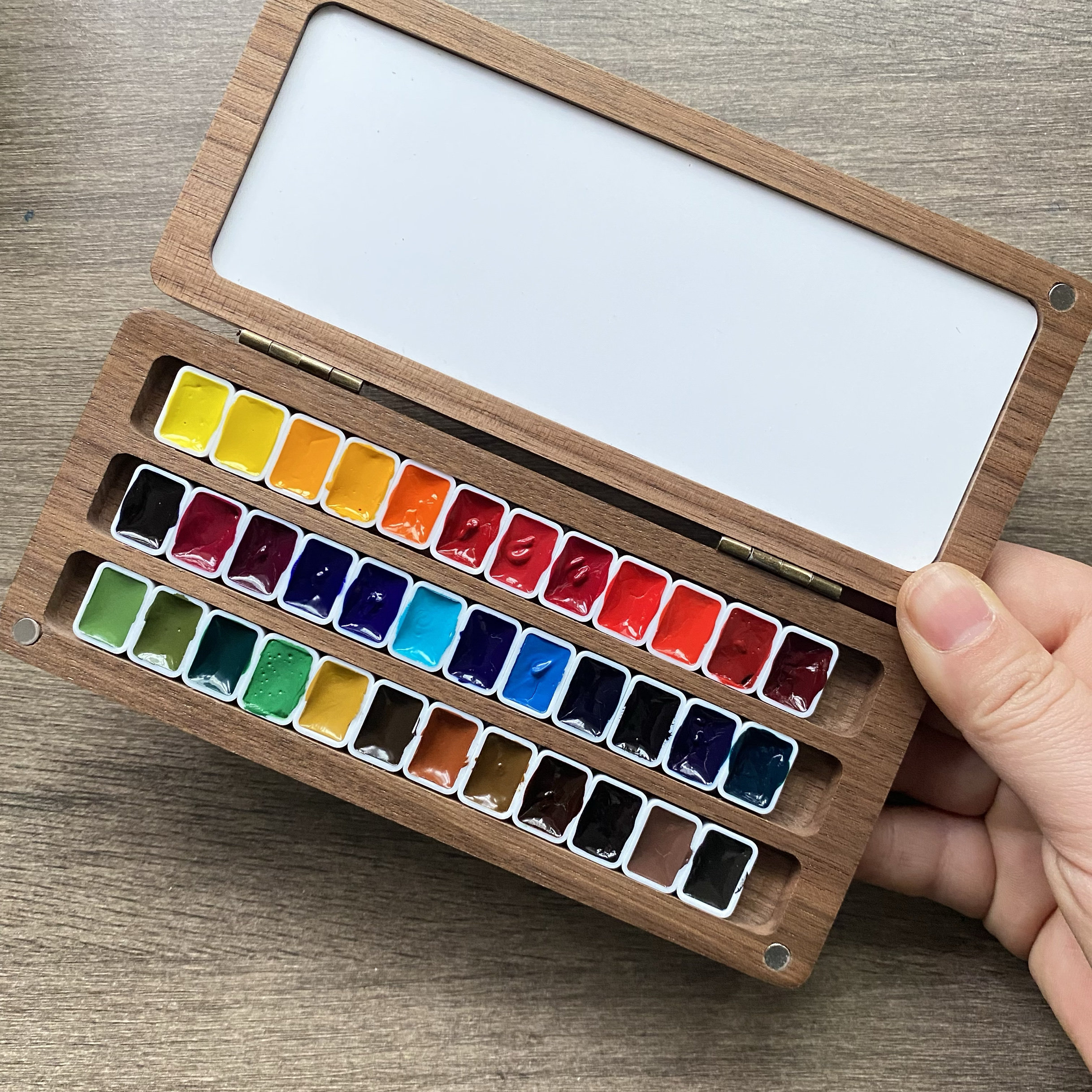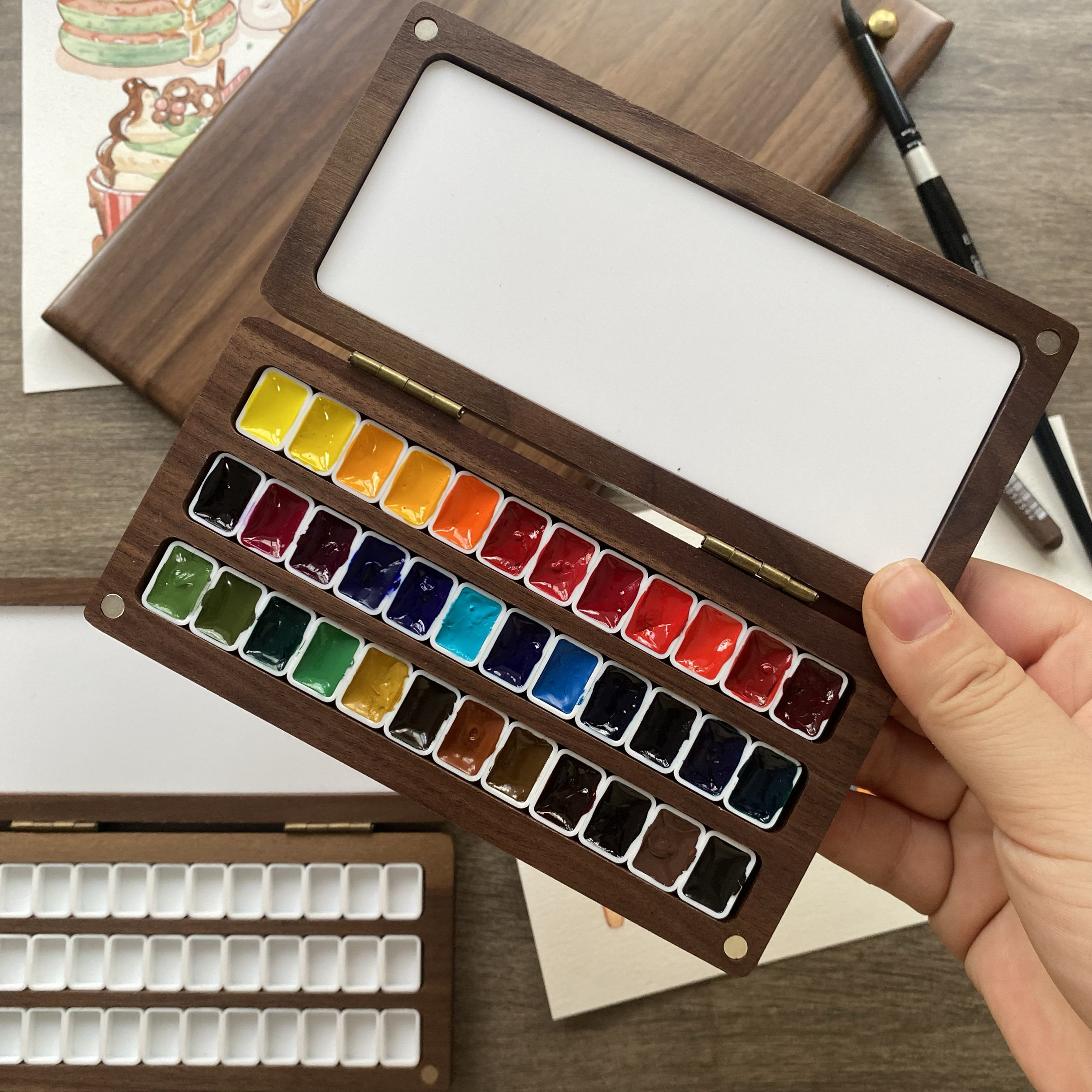 📚 胡桃木水彩木盒颜料荷尔拜因史明克麦克哈丁艺术家美甲定制分装