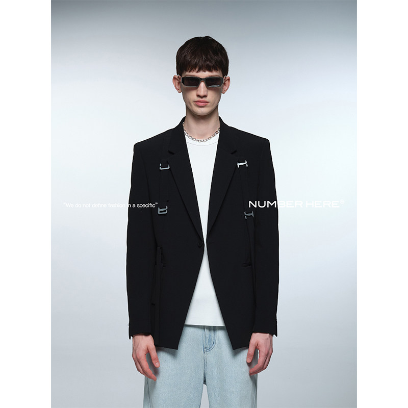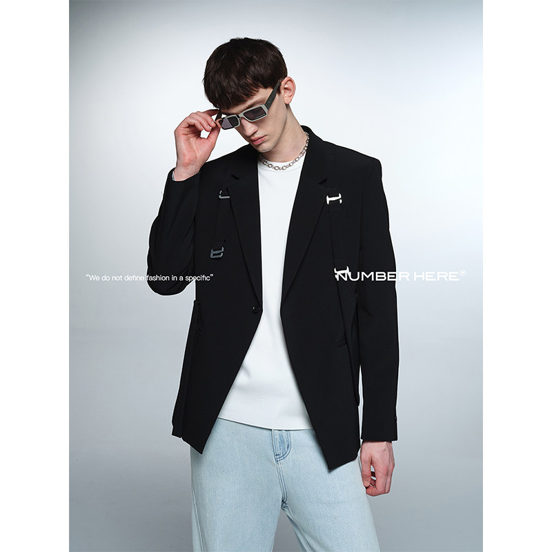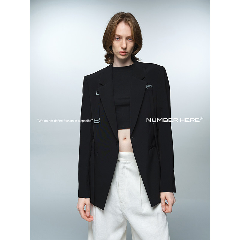 📚 NUMBER HERE三醋酸肩带口袋装饰休闲西装外套宽松西服NH24A214